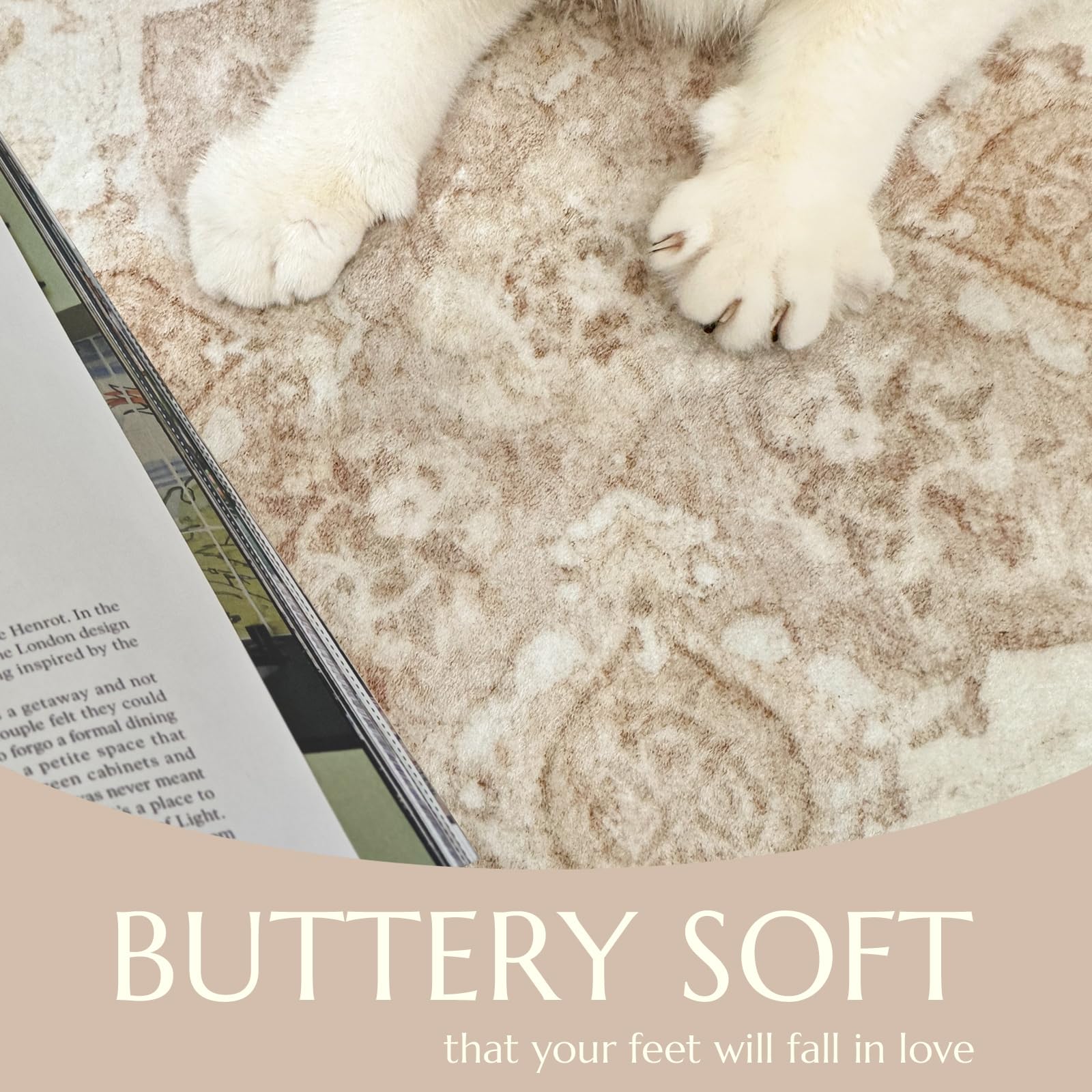 jinchan Washable Area Rug 3x5 Entryway Rug - Distressed Spring Floral Low-Pile Soft Non Slip Indoor Floor Carpet for Kitchen Bedroom Entrance Laundry Living Room(3x5ft,Tan)