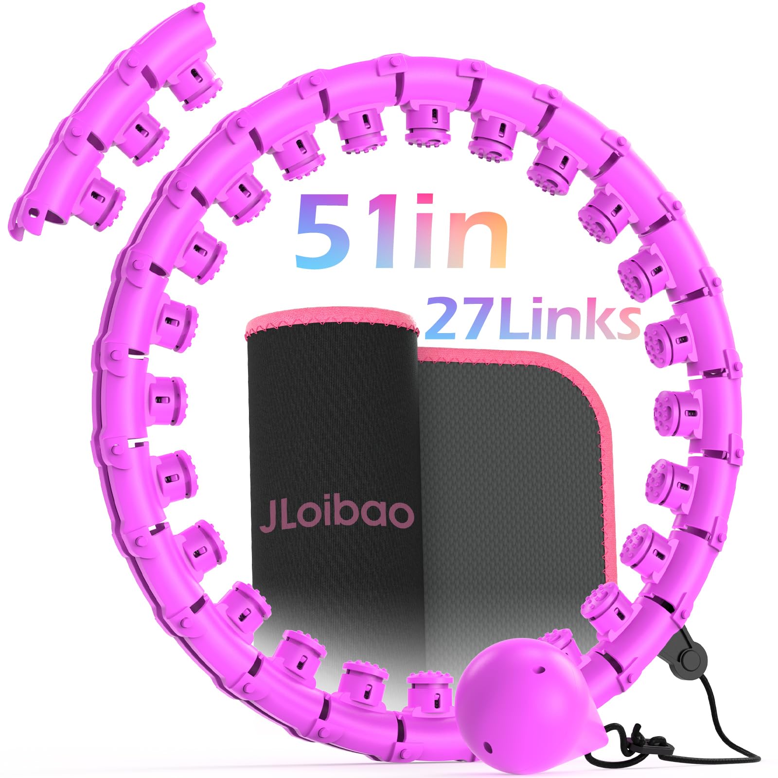 JLoibao Weighted Hula Circle for Adults Weight Loss, Infinity Fitness Hoop Plus Size 51 Inch with Sweat Belt, Include 27 Detachable Links and Waist Trainer for Women (Purple)