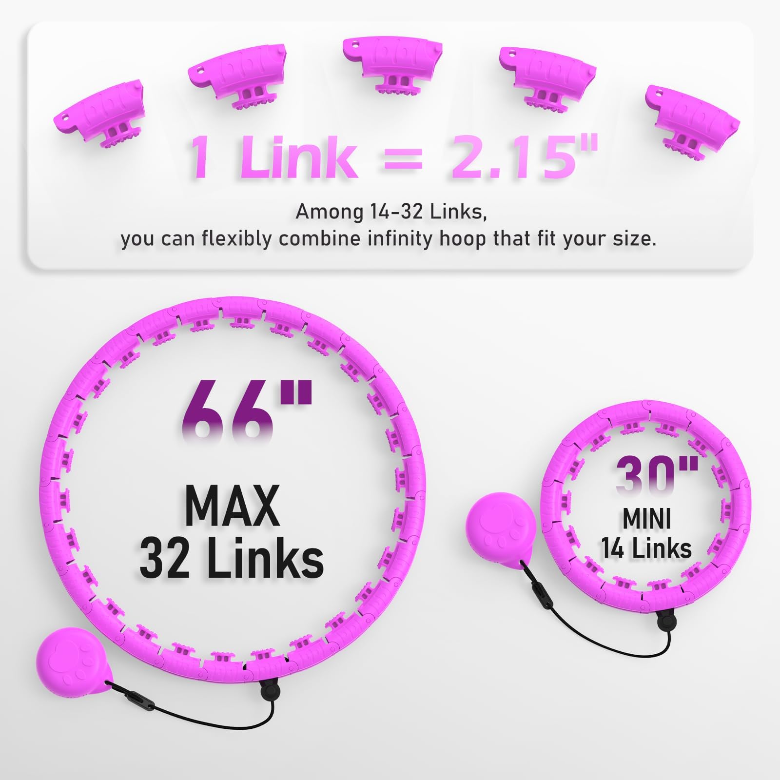 JLoibao Weighted Hula Circle with 32 Links(66 Inch), Sweet Weight Ball, for Adults Weight Loss, Infinity Fitness Hoop Plus Size, for Women Smart Exercise Equipment