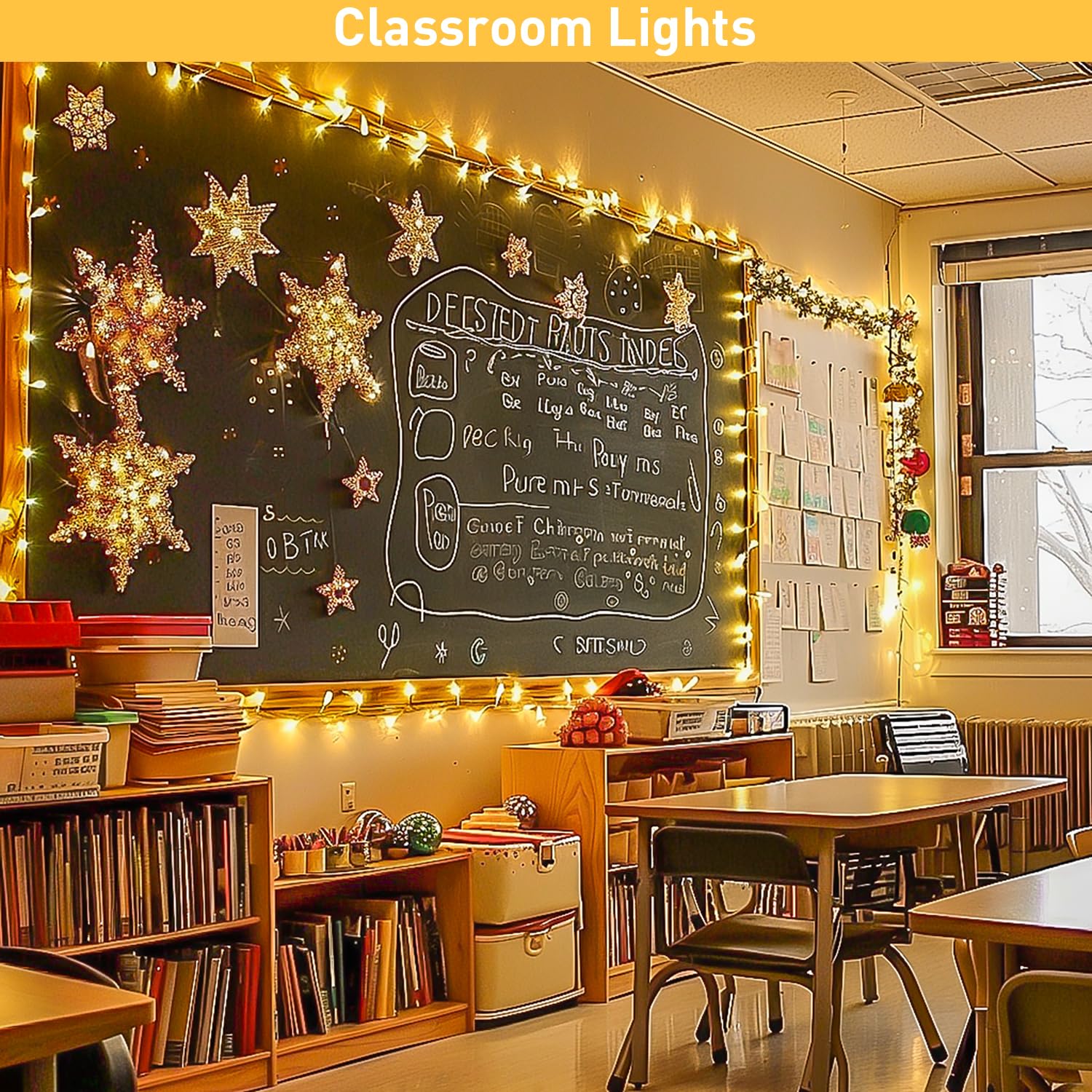 • 【Classroom Lights】The classroom lights are perfect for boards, windows, ceiling, or doorways, these classroom string lights add a touch of warmth and creativity to every classroom space. Whether it's for holiday celebrations, themed lessons, or everyday inspiration, our lights for classroom create a cozy and inviting atmosphere that enhances student engagement and imagination. Brighten up your classroom with ease and style! Elevate your classroom ambiance with our classroom string lights!