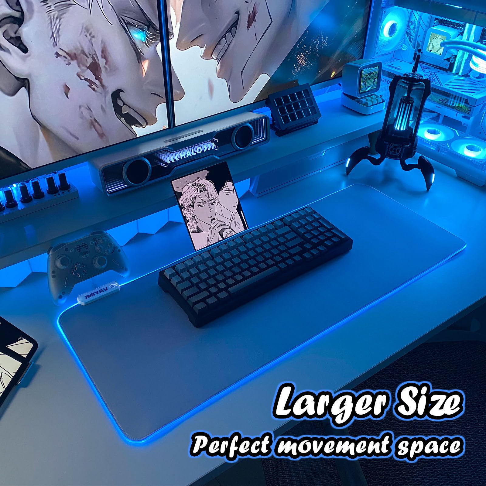 JMIYAV White Gaming Mouse Pad RGB Mousepad Non-Slip Rubber Base Extra Large Cool XL XXL Computer Desk Pad Gaming Accessories LED Light Up Extended Big Mouse Pad for Gamer (31.5x12In) Upgrade