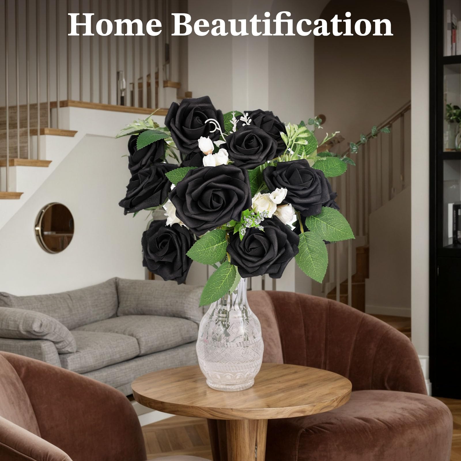• UNIQUE DESIGN - Unlike normal roses, our fake roses are in black. Rose represents love, peace, friendships, courage and unselfishness. Our black roses are suitable for Halloween and daily home decoration. Also perfect for DIY. Adjustable stem allows easy bending and cutting.