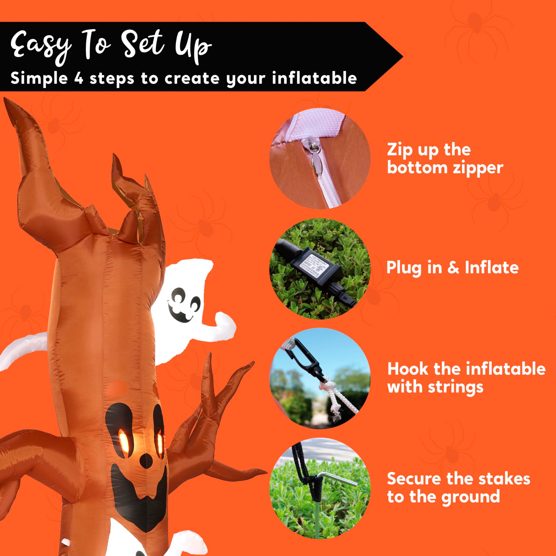 • 8 Ft tall inflatable scary tree. Goofy spooky convenient Halloween holiday yard decoration.