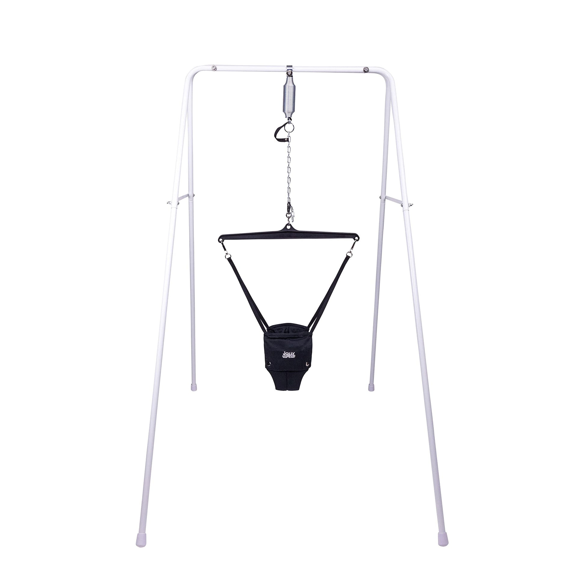 Jolly Jumper Classic (Black) with Stand - Baby Jumper, Indoor Exercise Saddle Seat, Adjustable Height, for Infants up to 28lbs, Your Alternative to Activity Centers and Baby Bouncers
