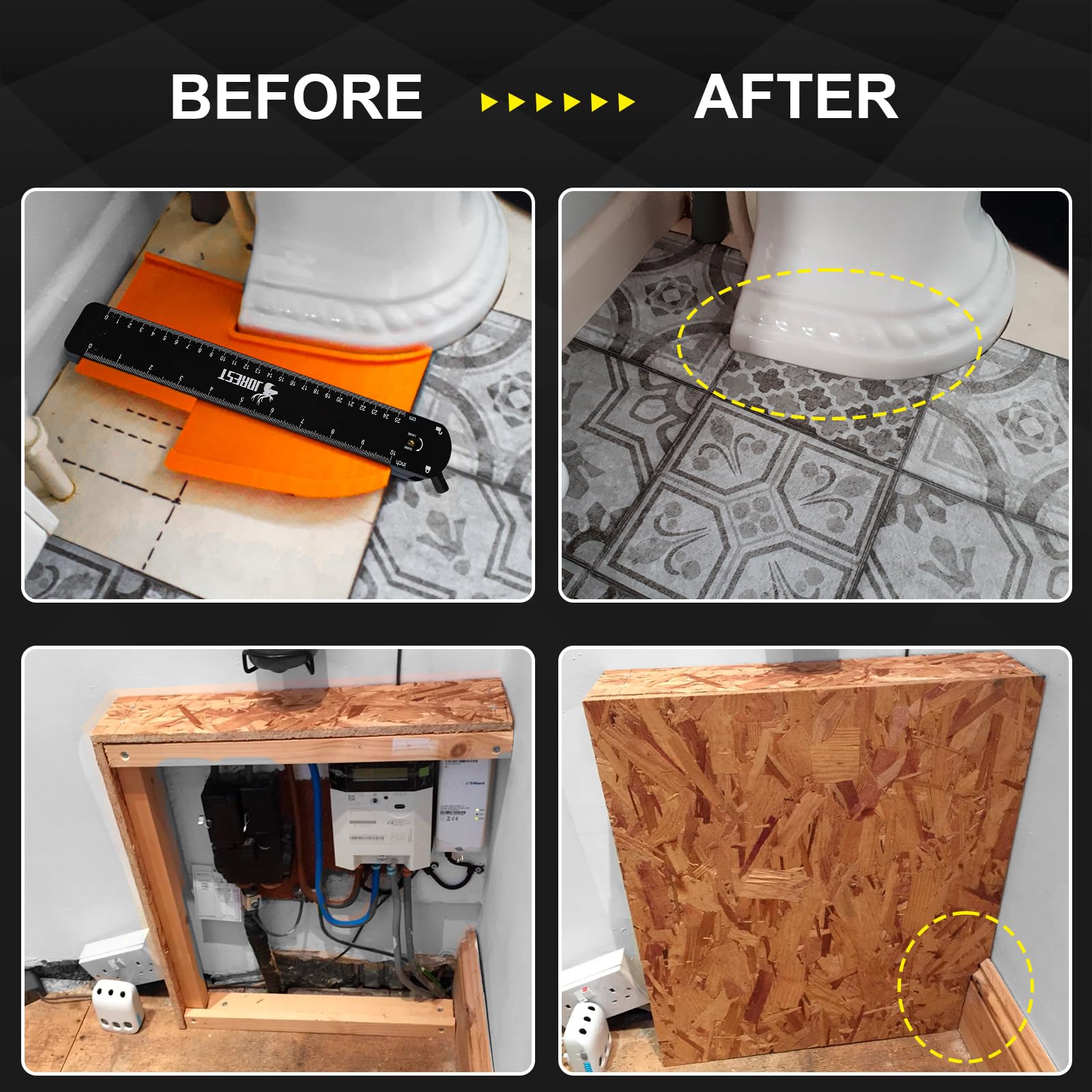 • 【Multi Purpose】Being used with other tools such as pallet buster, crowbar, bradawl, carpentry tools, marking tools, leveler tool, oscillating tool, caulking tool, floor/baseboard cutter and so on. Be it vinyl tiles laying, tiling, hardwood/lvp/laminate flooring, carpet cutting, wallpapering, wall panelling, home improvement, wood working, winding pipes, moulding, welding, DIY, the JOREST contour gauge comes in handy while profiling work.