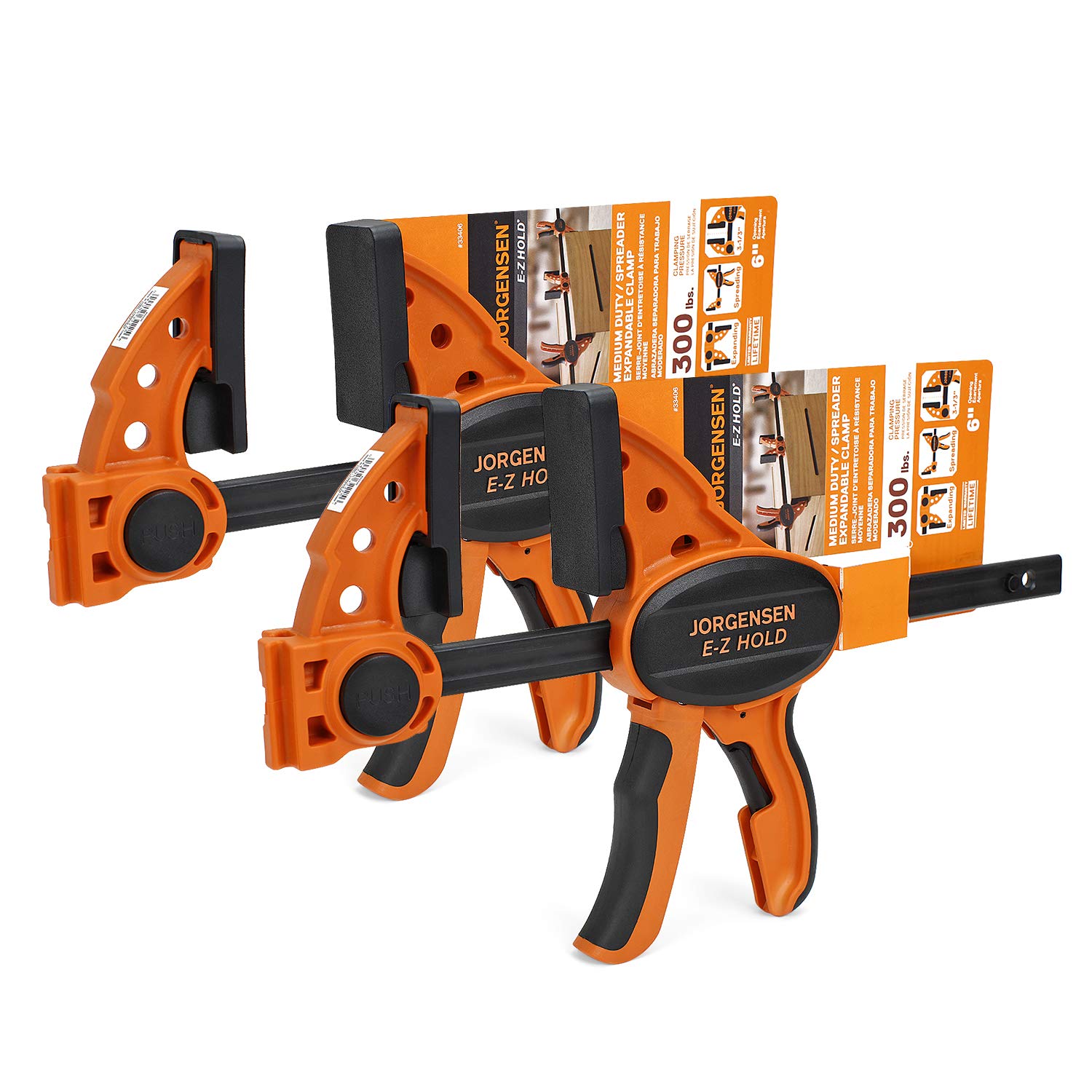 Jorgensen 6" One Hand Clamp/Spreader, 300 Lbs Clamping Force, E-Z Hold Bar Clamps Set, Medium Duty, 2-pack