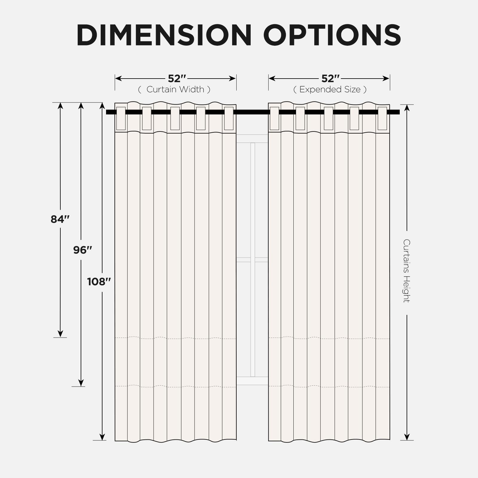 • 【Packaging Specifications】Each package contains 96 inch curtains 2 panels. Single panel measures 52'W x 96'L | Pair measures 104'W x 96'L.