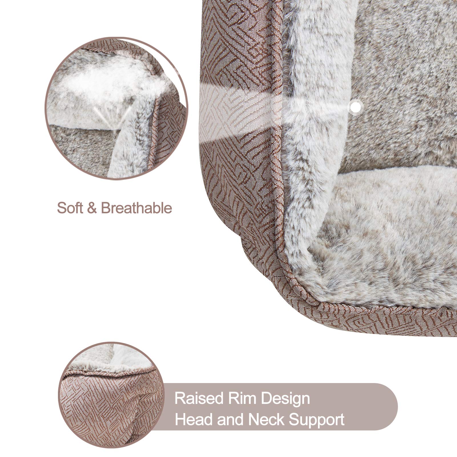 • BETTER SUPPORT DESIGN: The raised rim provides support for their neck and head and creates a sense of security. The rectangular-shaped support dog bed has one lower side for easy entry, and there is plenty of room for your dog on this calming dog bed to get a cozy slumber.