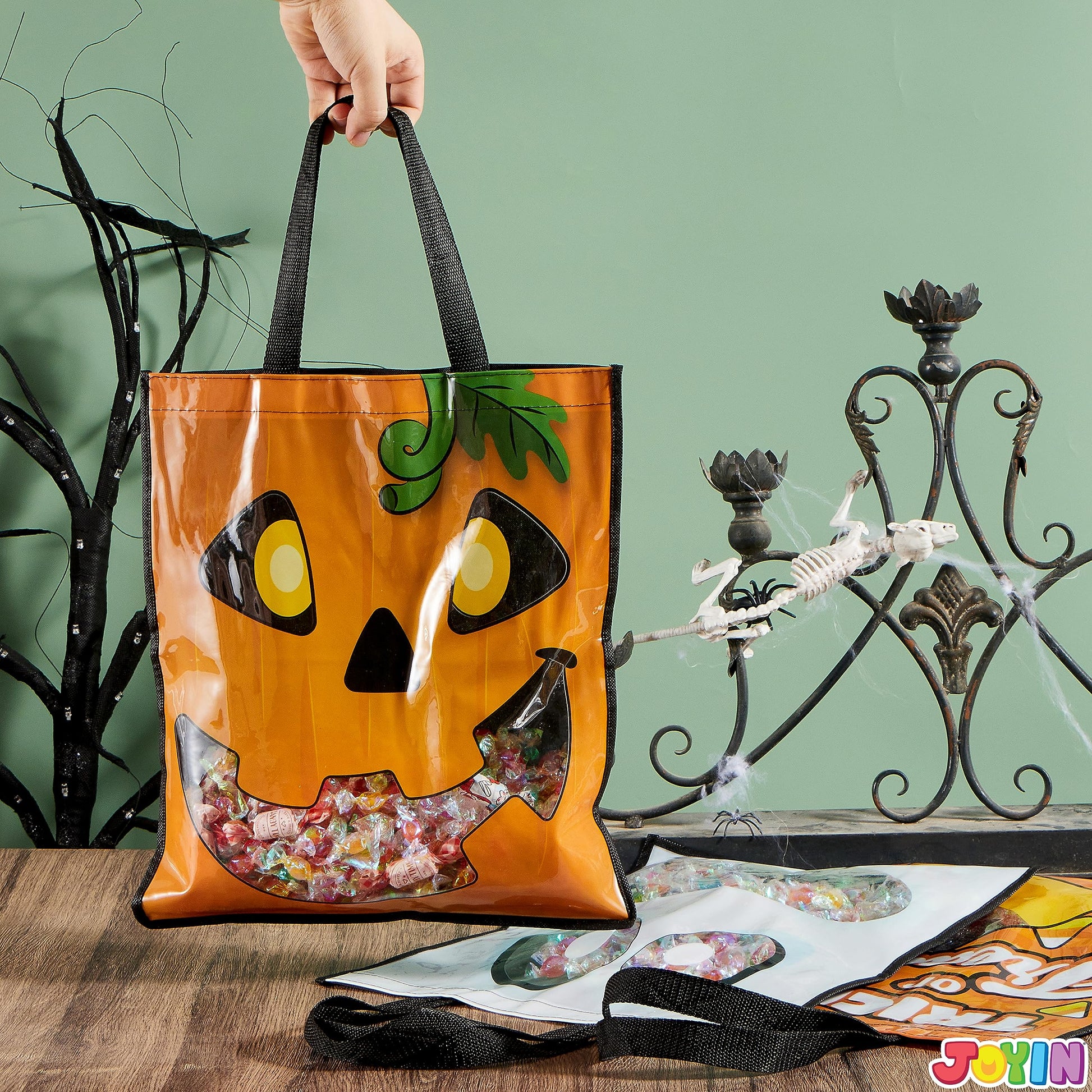 JOYIN 3 PCS Halloween Large Tote See-through Bags, 22.5” x 13.4” Halloween Goodie Candy Bags for Kids Trick or Treating, Grocery Shopping Gifts Tote with Handles, Classroom Party Favor Supplies