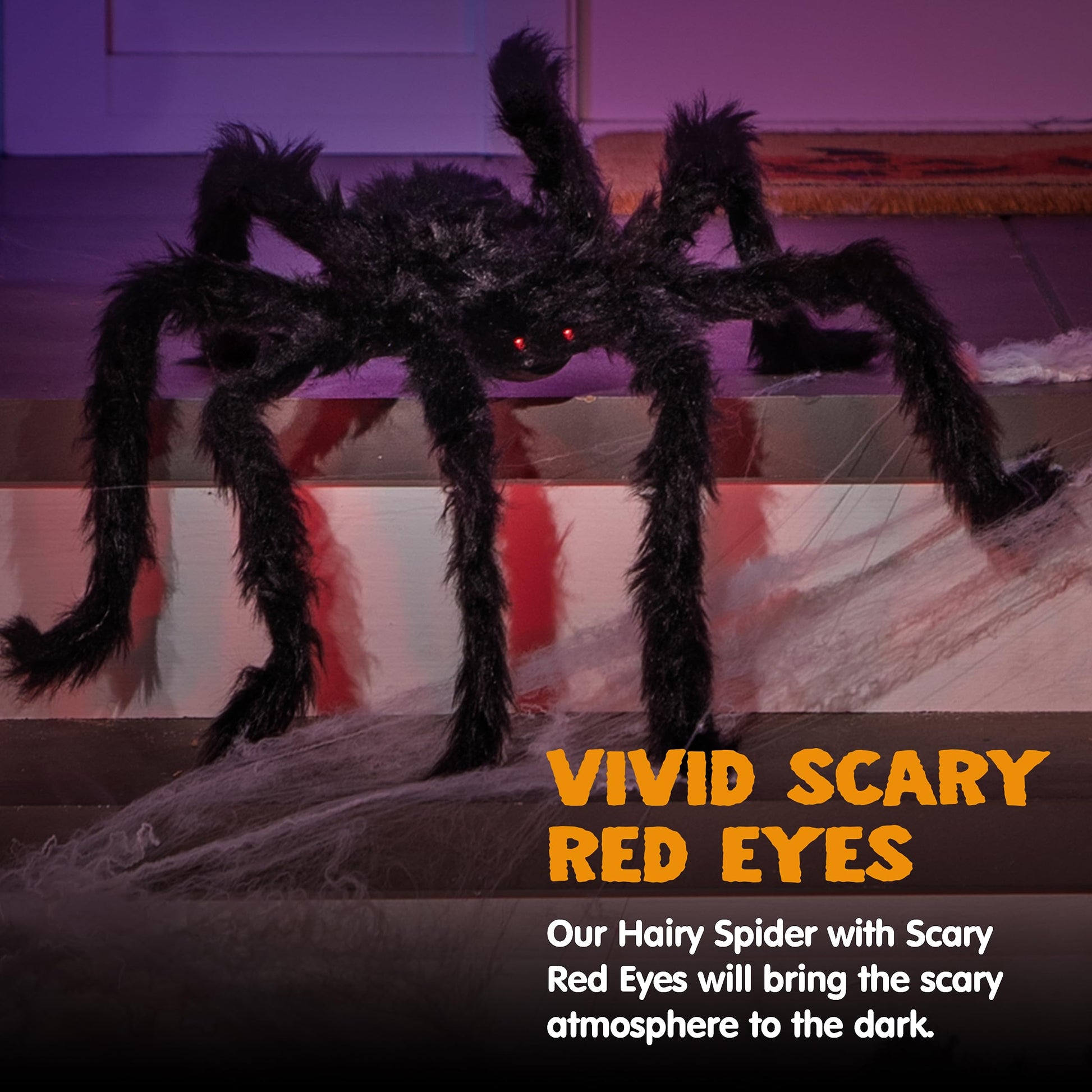 • CREEPY HALLOWEEN DECOR: Our Halloween Hairy Spider boasts a spine-chillingly realistic design and covered with soft plush, standing tall at an impressive 6.5ft. These vivid spiders look creepy and scary, get ready to spook your guests with this lifelike addition to your Halloween setup!