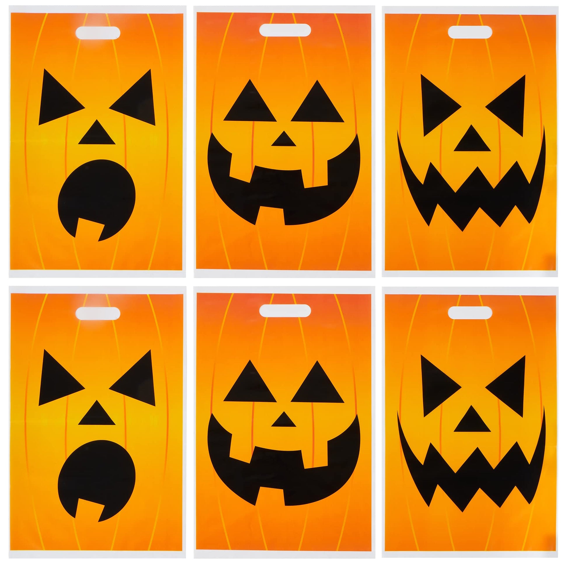 • 🎃SUPER VALUE PACK. Our Halloween Goodie Bags Set includes 72 pcs Pumpkin Trick or Treat Bags. Each Jack o' Lantern bag measures 11'x17', large enough to hold plenty of candy and Halloween treats. Our Halloween Treat Bags Set Comes in 6 Designs. Each Halloween Goodie Bags with A Pumpkin Face is a great trick-or-treating party favor for Halloween!
