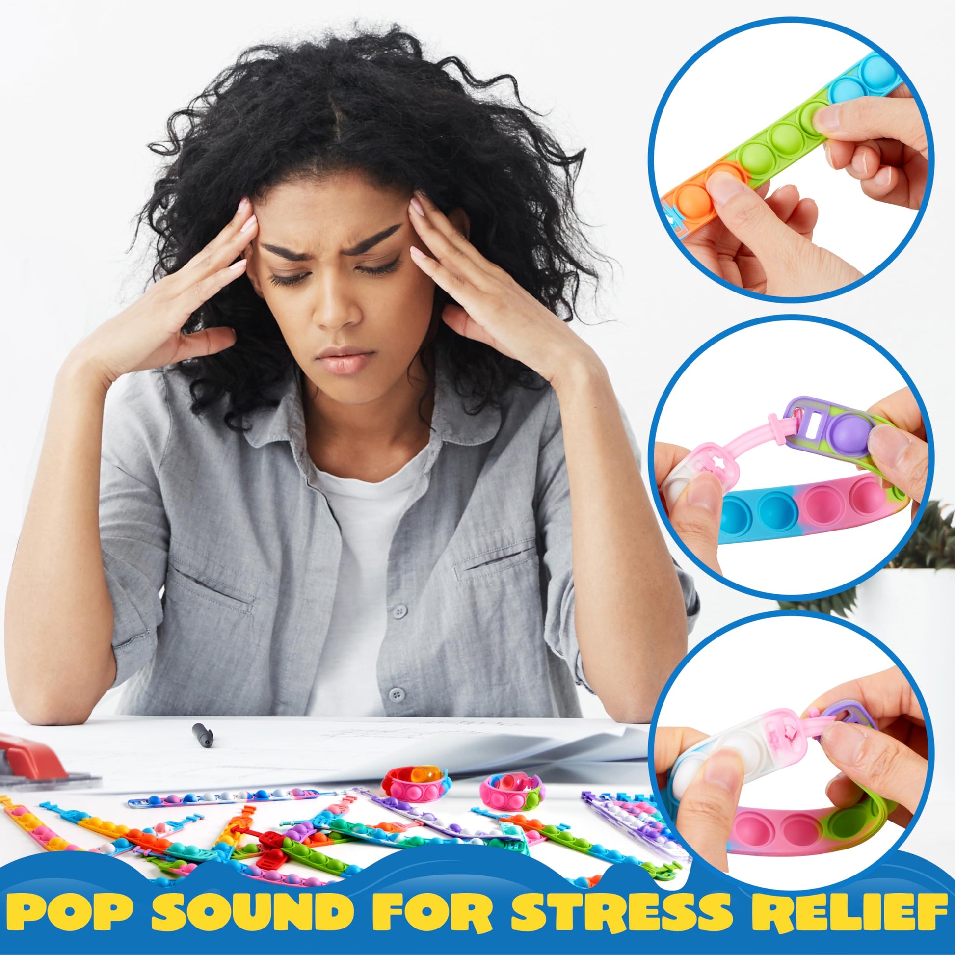• Fun Fidget Toys for Kids & Adults: This pops set is not only suitable for kids, but also good for adults to relieve anxiety. They are great fidget bracelets for adults, kids and anxiety, decrease depressions, more concentrate and focus on working