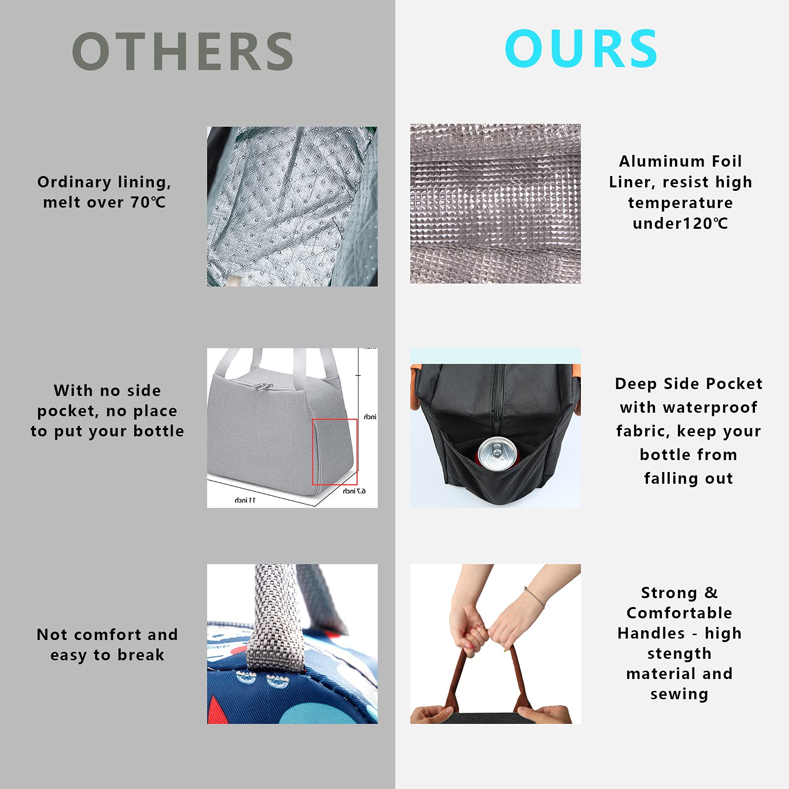 • ❤BUY WITH CONFIDENCE: If you are not satisfied with our lunch bag, we will offer you 30 days refund or replacement. If any problem, please contact us via email, we will reply you within 24 hours during working day. So buy it without any hesitation.