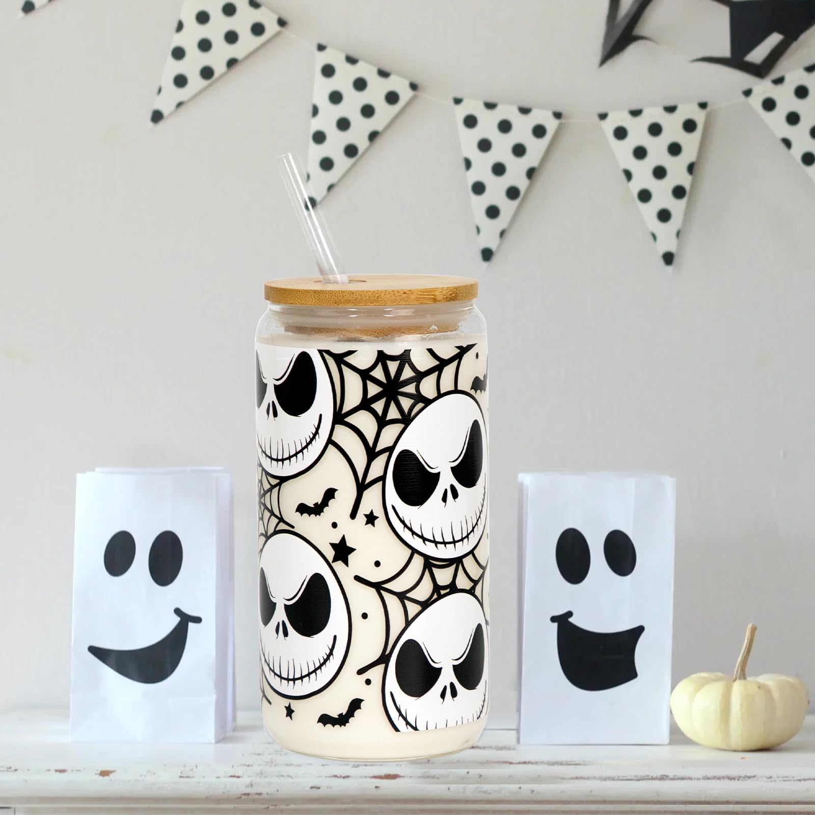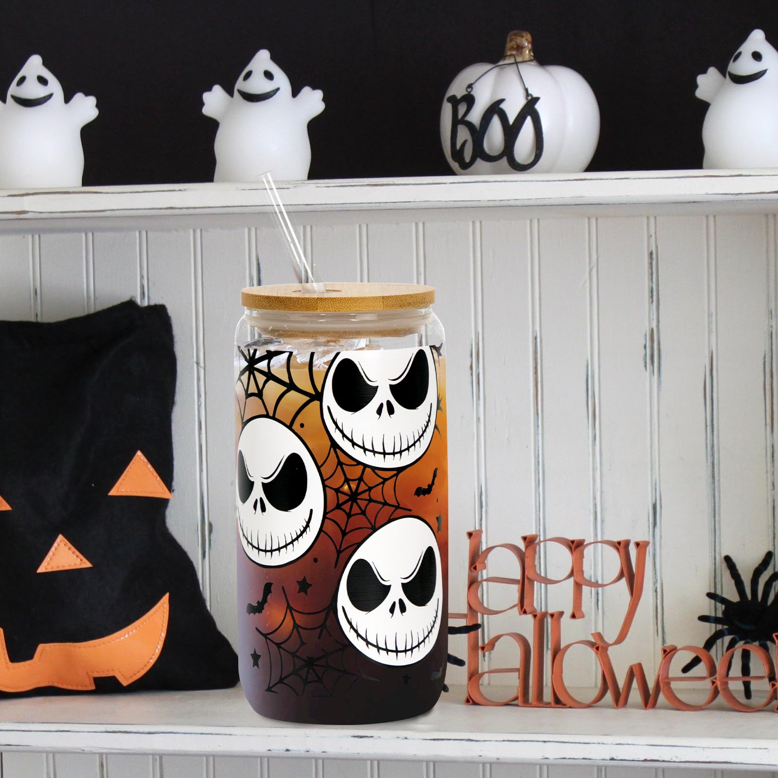 • Versatile Can Glass: The pack includes 1 Halloween glass cup 18oz, 1 bamboo lid, 1 glass straw and 1 cleaning brush. Not just for iced coffee, this glass is versatile enough for a range of beverages.