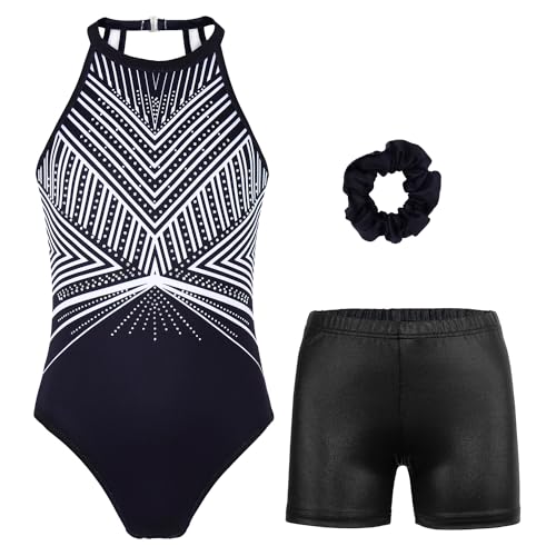JOYSTREAM Gymnastics Leotards for Girls With Shorts Sparkly Ballet Dance Clasp Back Activewear Line Diamond,6-7Years