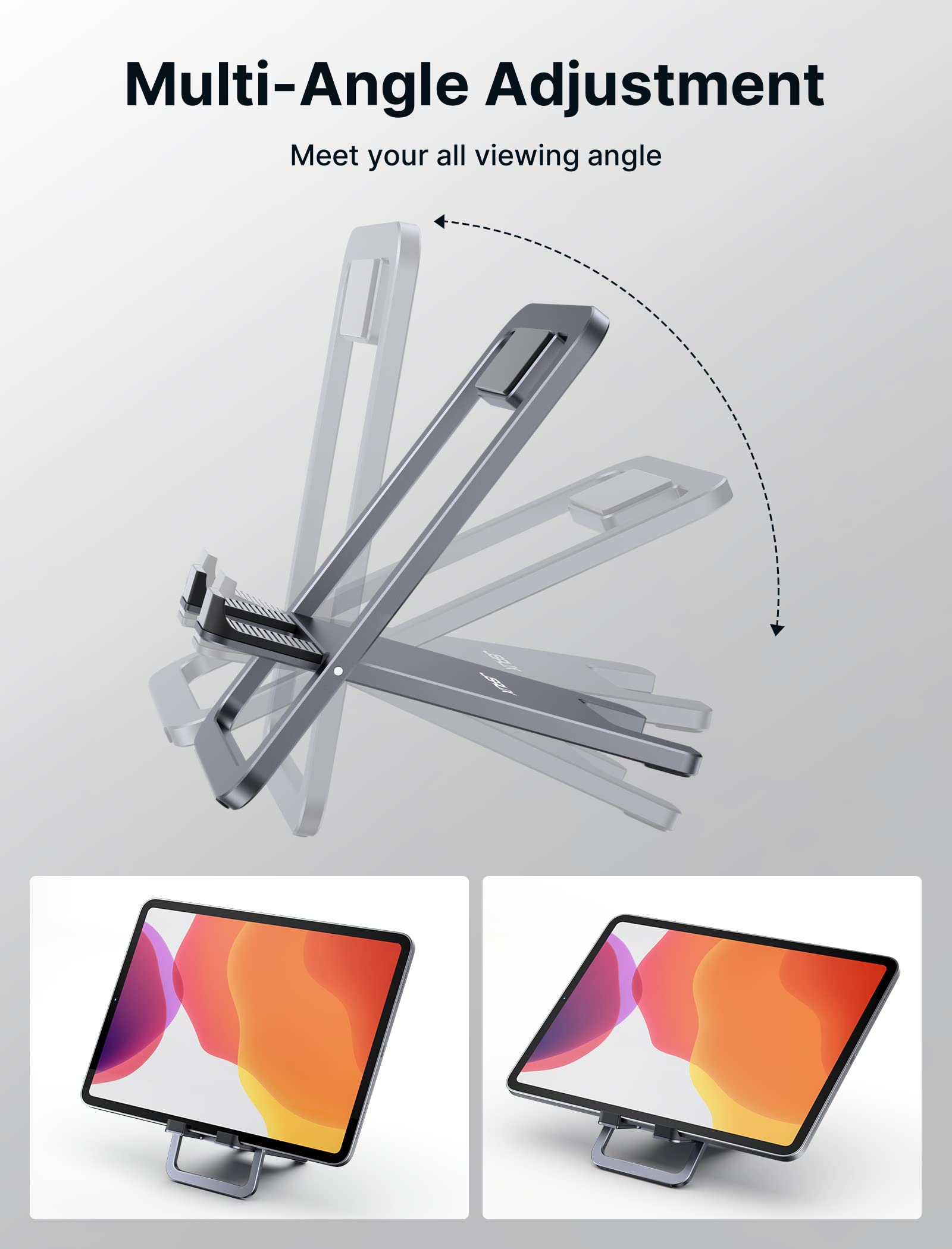 • Portable & Compact: Foldable design makes this tablet stand easy to carry and store, perfect for on-the-go use or switching between spaces