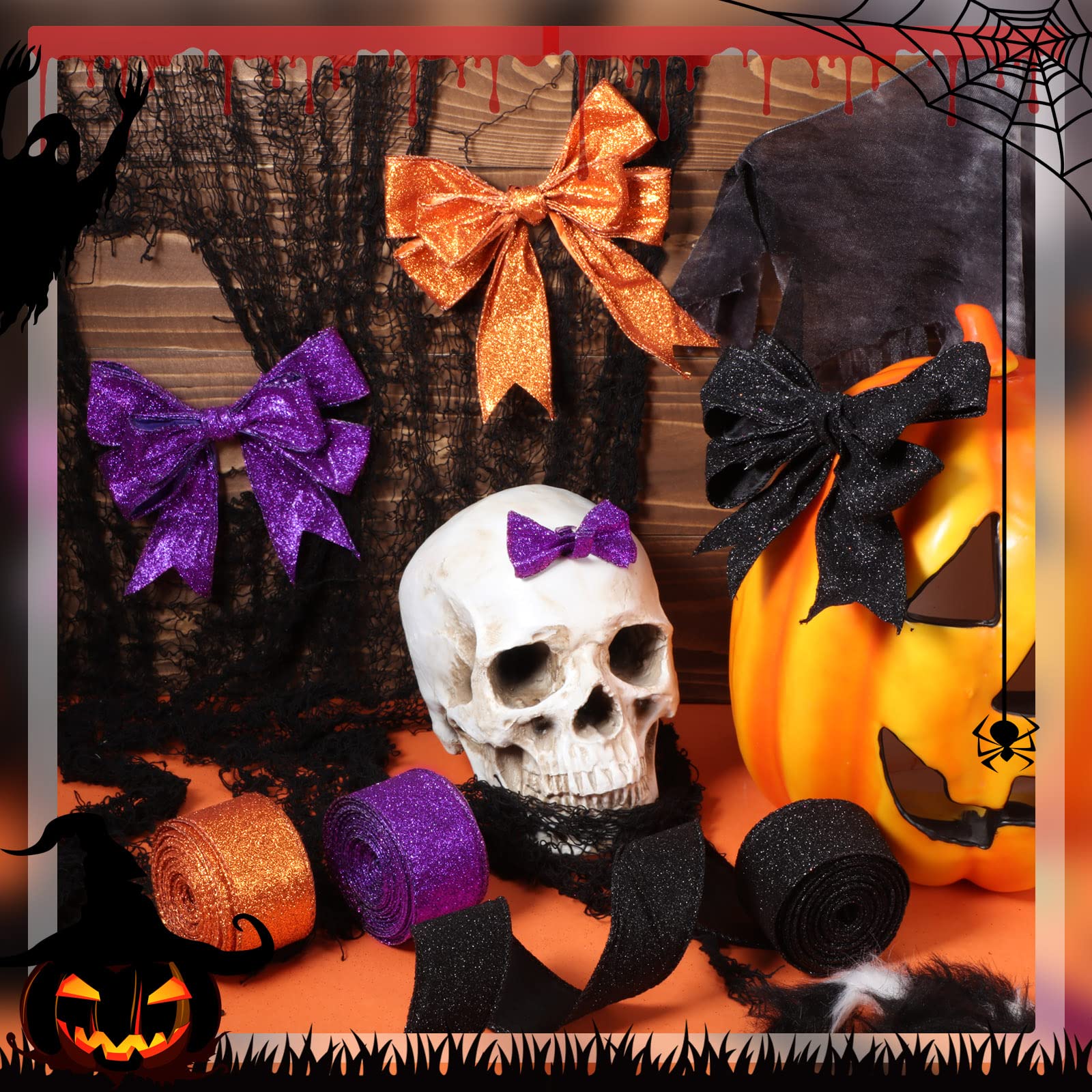 - Halloween Glitter Metallic Ribbon: the glitter ribbon with bright black, orange, purple colors, bright Halloween colors, designed to create a fun and happy Halloween atmosphere, dotted with sequins, shining in the sun and light, charming and shiny, easy to attract the attention of others