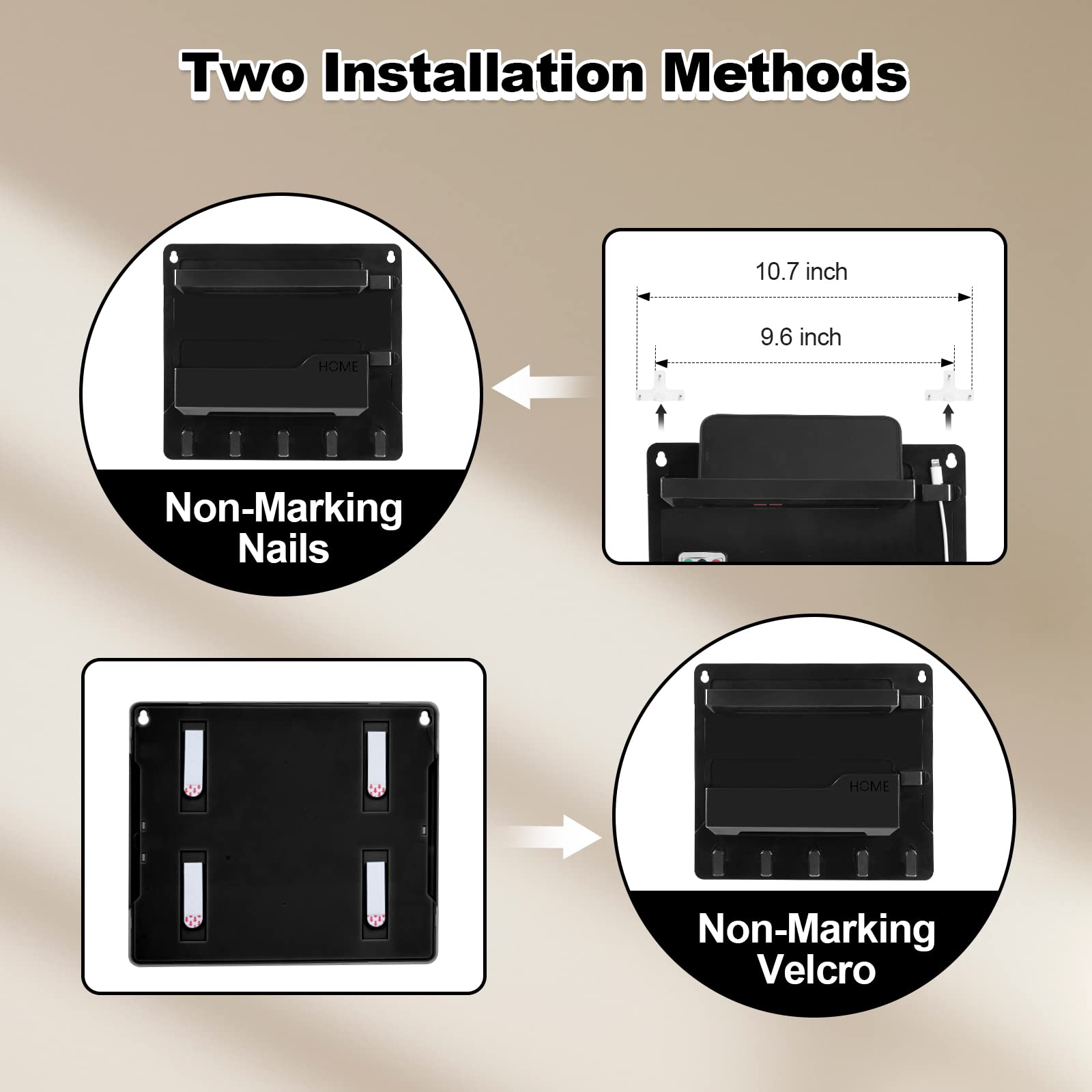 • TWO INSTALLATION METHODS: ①. Traditional no trace nail installation method ②. velcro installation method(No drilling, no damage to the wall). Products include: 1 X wall mount, 2X NO Trace nails, 4X Velcro