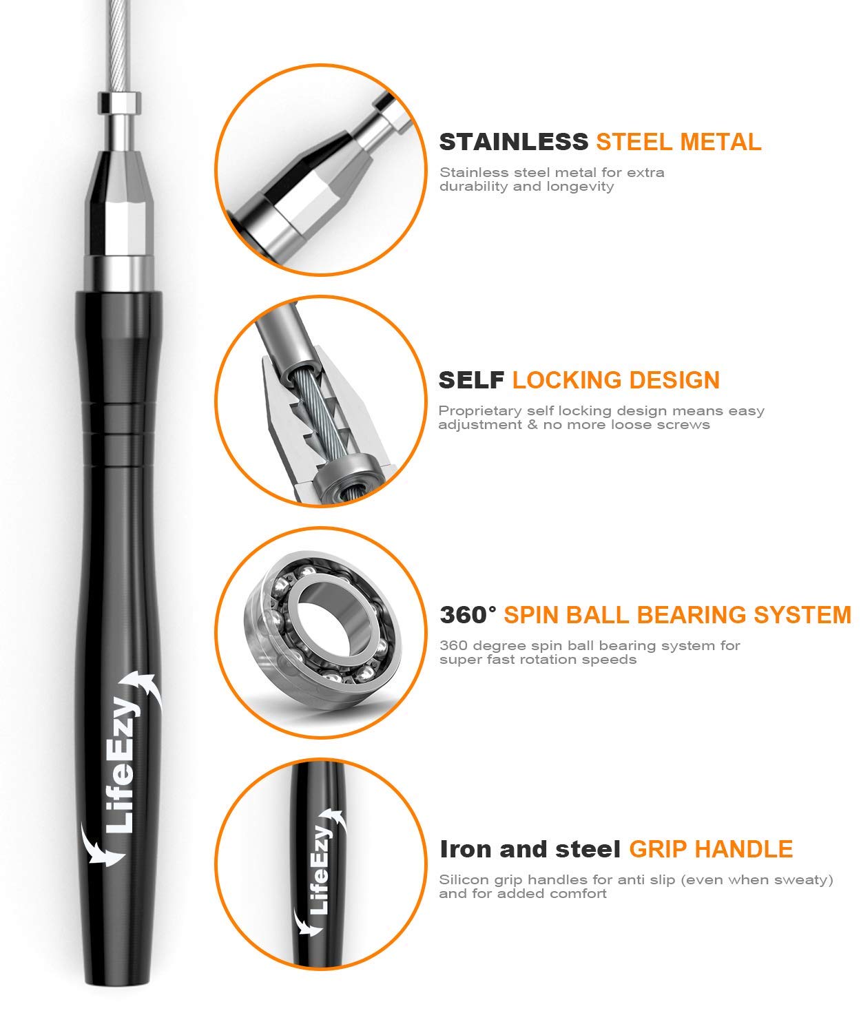 Jump Rope, High Speed Weighted Jump Rope - Premium Quality Tangle-Free - Self-Locking Screw-Free Design - Skipping Rope for Workout Fitness, Crossfit & Home Exercises (Black)