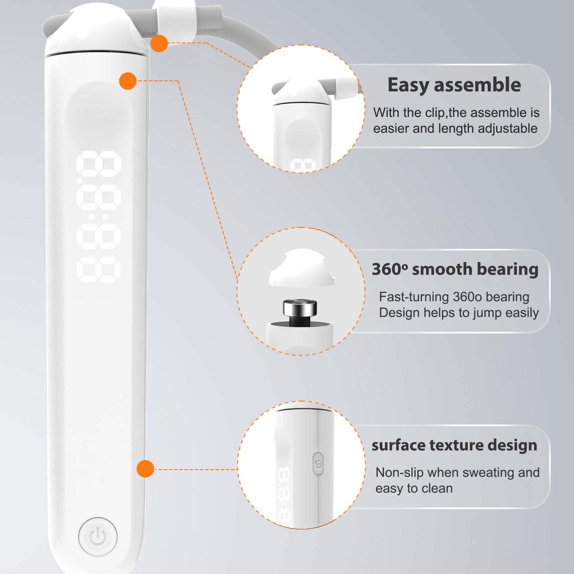 • ACCURATE TRACKING-The counting is also accurate enough for daily exercises,the built-in 3-axis Hall sensor and precise algorithm ensure that the number of valid skipping ropes is calculated only after the bearing rotates 360 degrees.Each of your jumps is accurately recorded