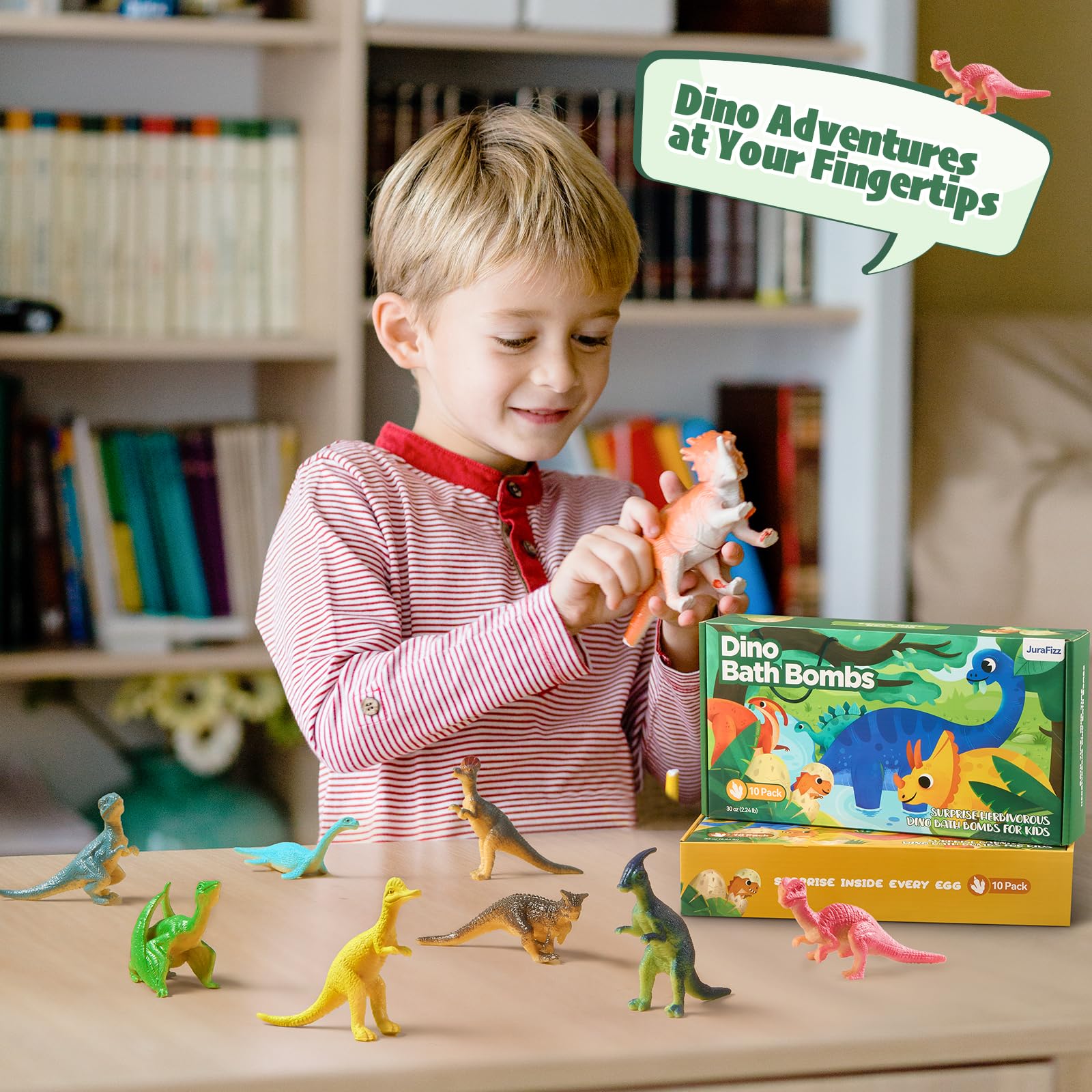 JuraFizz Dinosaur Bath Bombs for Kids with Surprise Inside, 20 Pack Natural Dino Egg Bath Bombs with Exclusive Carnivorous & Herbivorous Dinosaur Toys, Birthday Party Favors for Boys, Girls