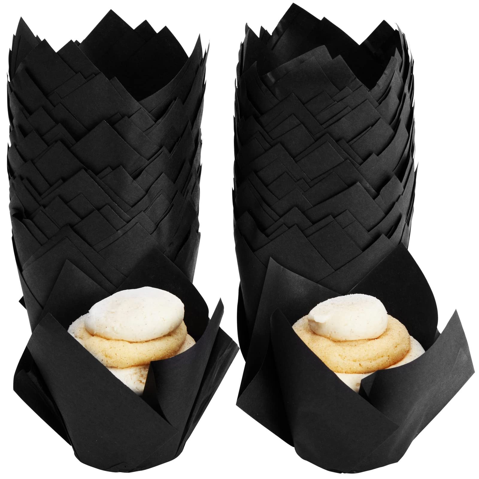 Juvale Cupcake Liners - 2 x 3.5 in, Black, 100 Pack - Tulip Cupcake Liners for Baking & Parties - Greaseproof Paper Wrappers