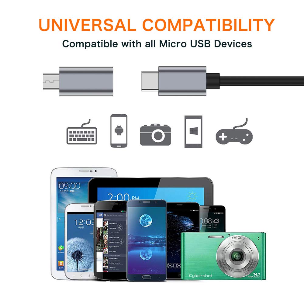 • 【Friendly Design 】Allows you charge and sync Micro USB mobile devices using a USB Type C cable, which helps reduce the number of cables that you need to carry around with you(Note: compatible with micro USB devices, not compatible with Type c devices).