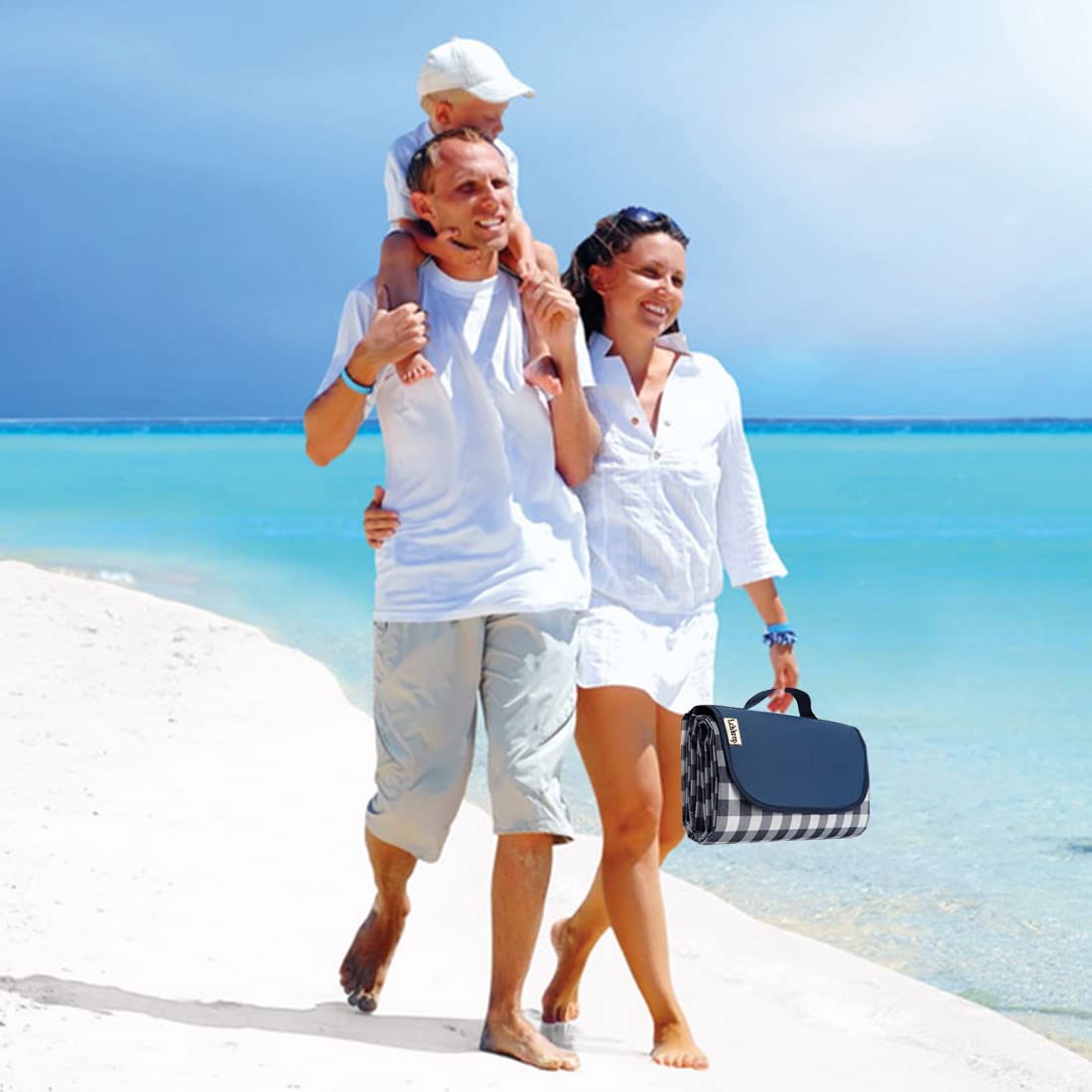 K Y KANGYUN Outdoor Picnic Blankets, Extra Large Beach Blanket, Foldable Lightweight Waterproof Sand Mat, Picnic Blanket 80" x 60" for Beach Camping Hiking Park Patio (Dark Blue, 80x60 inch)