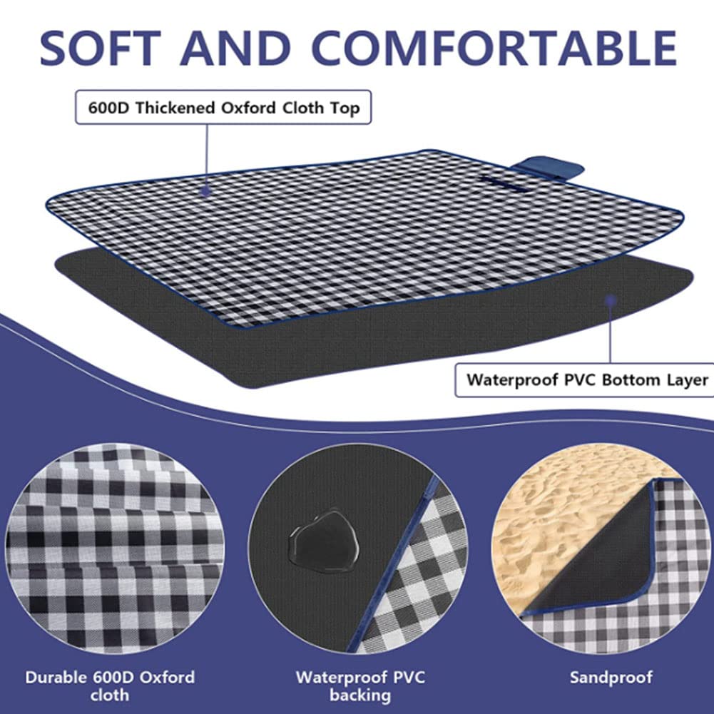 • USE ANY OCCASIONS: This blanket is completely waterproof and sand proof. Whether used as a beach blanket, camping blanket, RV blanket, outdoor pet blanket or baby play mat, our picnic blankets with waterproof backing is the perfect choice for you. The picnic blanket is widely used both indoor and outdoor concert.