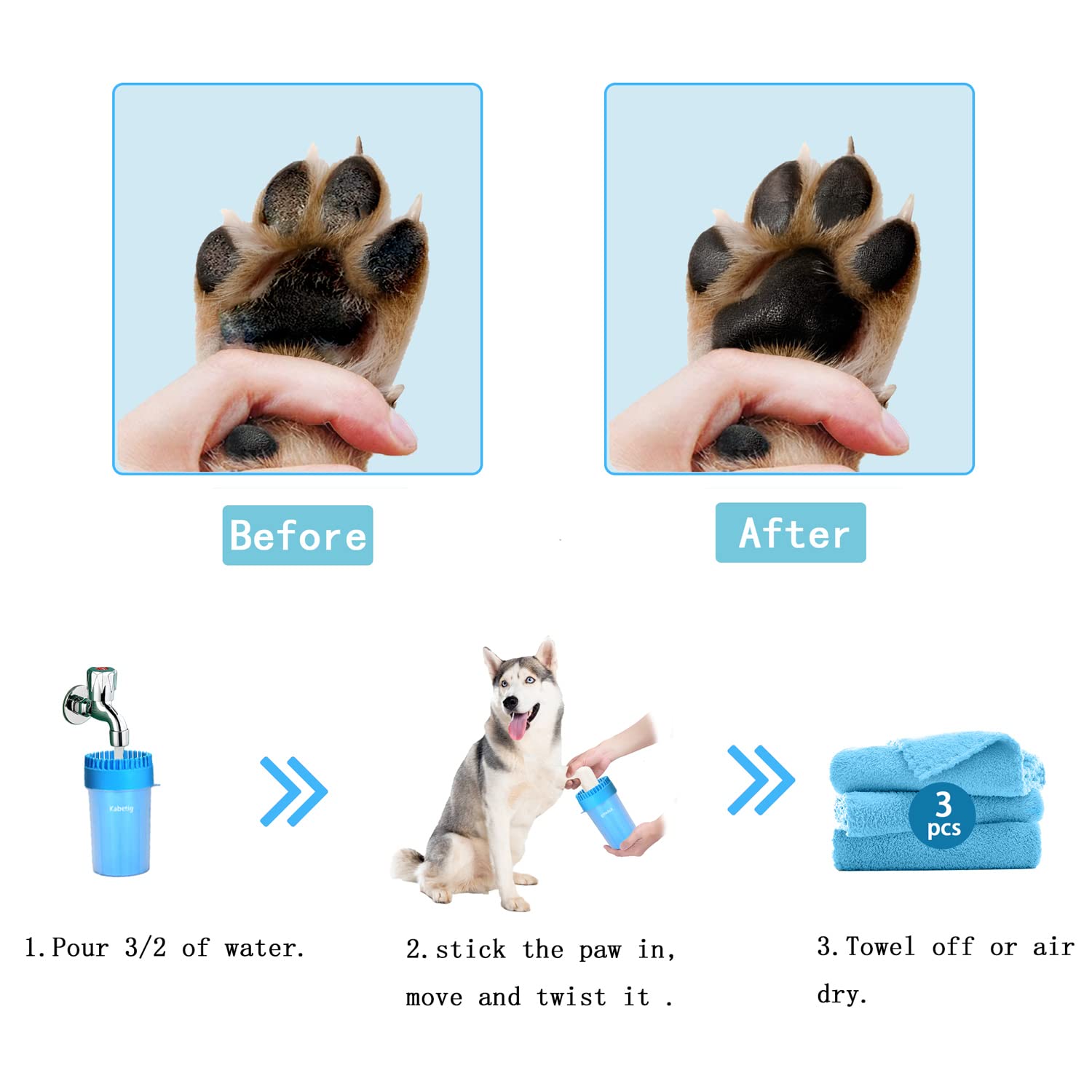Kabetig Dog Paw Cleaner for Meduim Small Breed Dogs with 3Pcs Absorbent Towels & Graspable Dog Bath Brush (Blue, Medium)