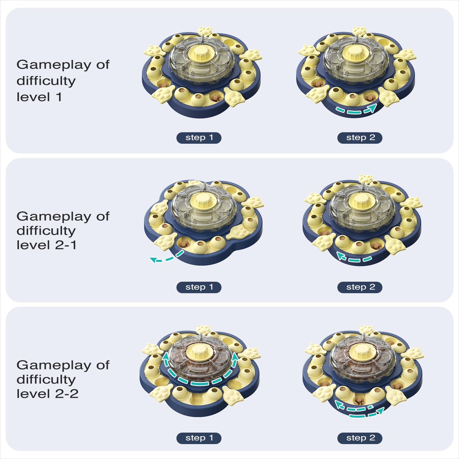 • [Perfect Puzzle Toy for Mental Engagement] This interactive puzzle toy integrates three difficulty levels and a total of four exciting play modes, which challenge your dog and keep them engaged. With each difficulty level, your dog will be rewarded with treats as they solve problems, promoting their brain development and enhancing their cognitive abilities. Whether they are a beginner or an advanced learner, this toy is perfect for relieving anxiety, boosting emotional stability, and strengthening your dog’s bond with the family, while helping them stay mentally sharp.