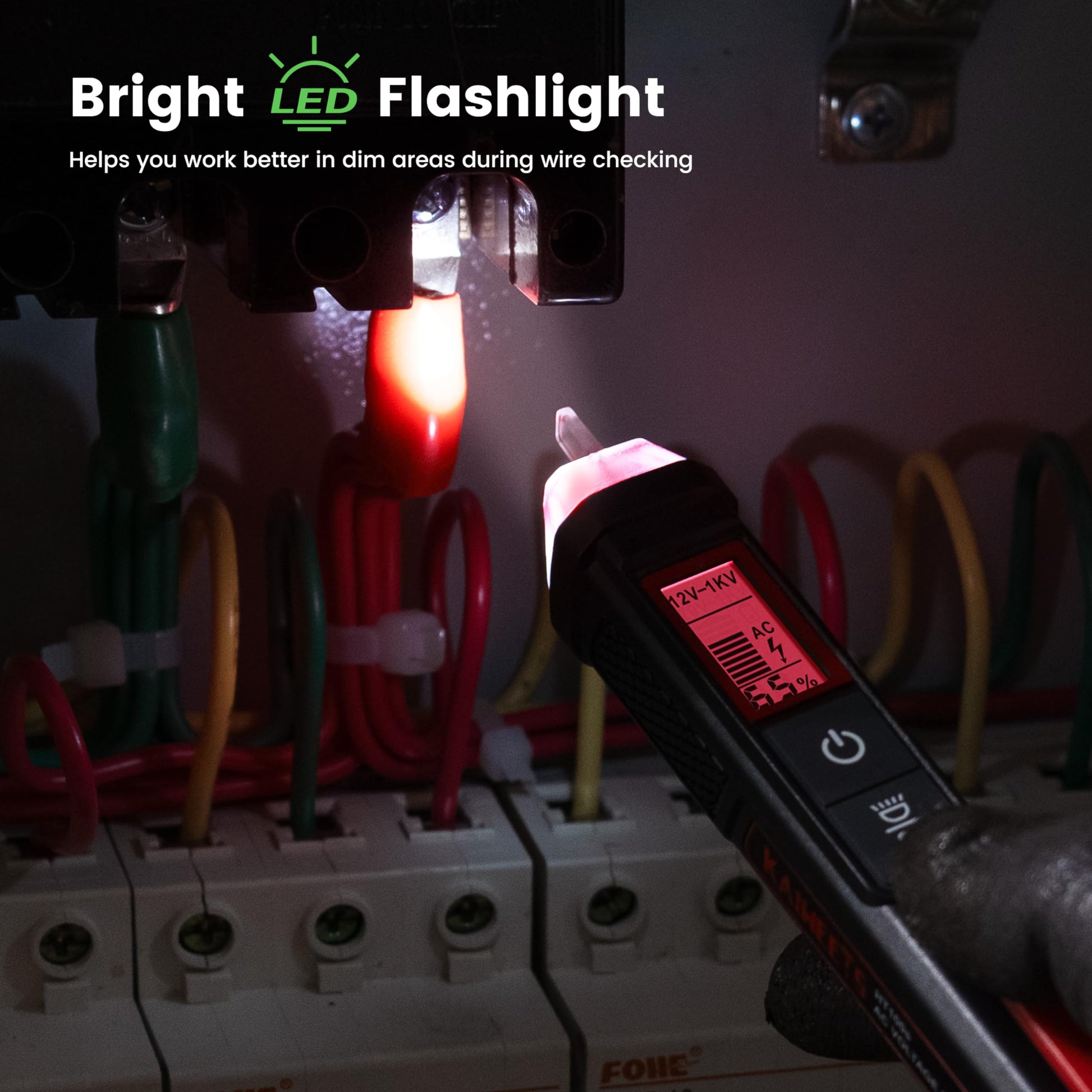 KAIWEETS Voltage Tester/Non-Contact Voltage Tester with Signal Percentage, Dual Range AC 12V/70V-1000V, Live/Null Wire Tester, Electrical Tester with LCD Display, Buzzer Alarm, Wire Breakpoint Finder