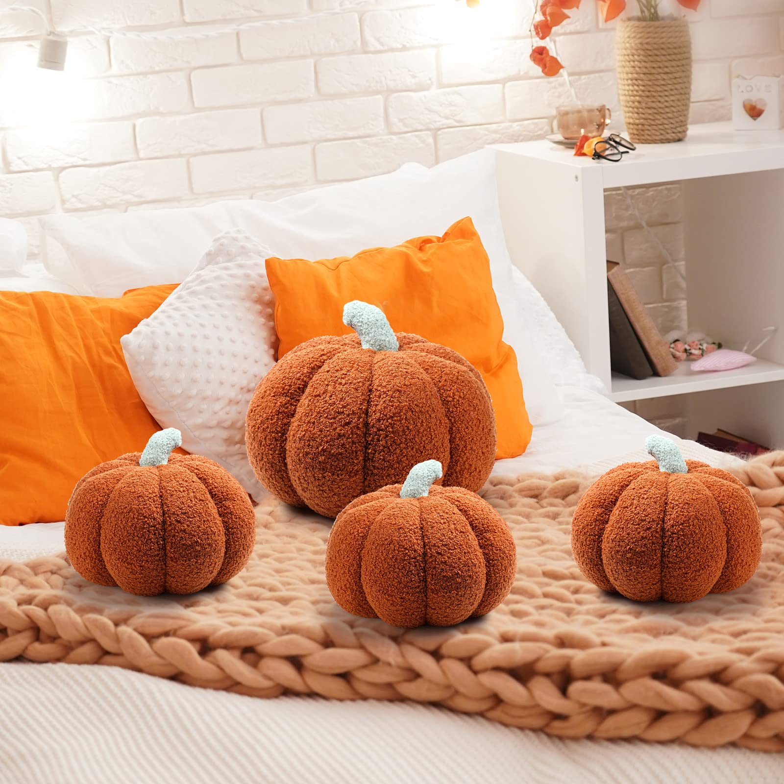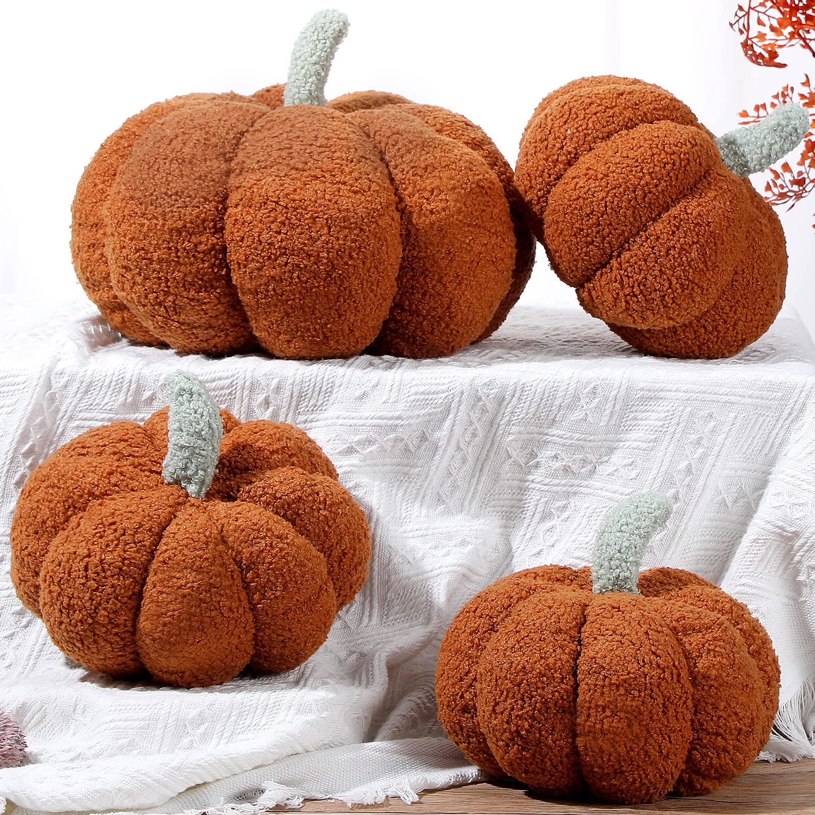 Kajaia 4 Pcs Pumpkin Throw Pillow Cushion 3D Thanksgiving Pumpkin Pillow Halloween Sherpa Fall Pumpkin Toy Fluffy Stuffed Pillow Kids' Plush Toy Pillow,11 Inches, 7 Inches (Brown)