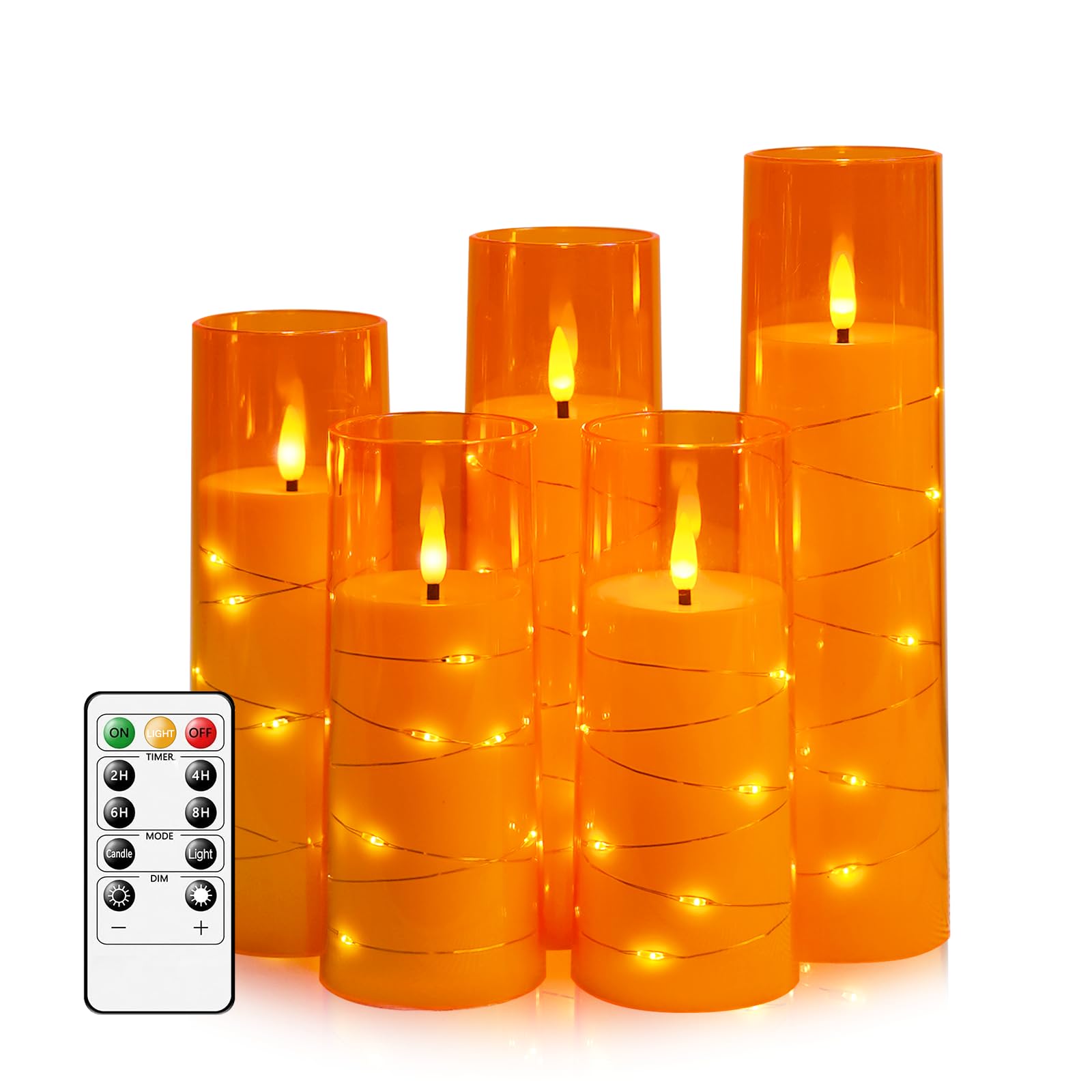 kakoya Flameless LED Candles with Timer 5 Pc Flickering Flameless Candles for Romantic Ambiance and Home Decoration Stable Acrylic Shell,with Embedded Star String,Battery Operated Candles(Orange)