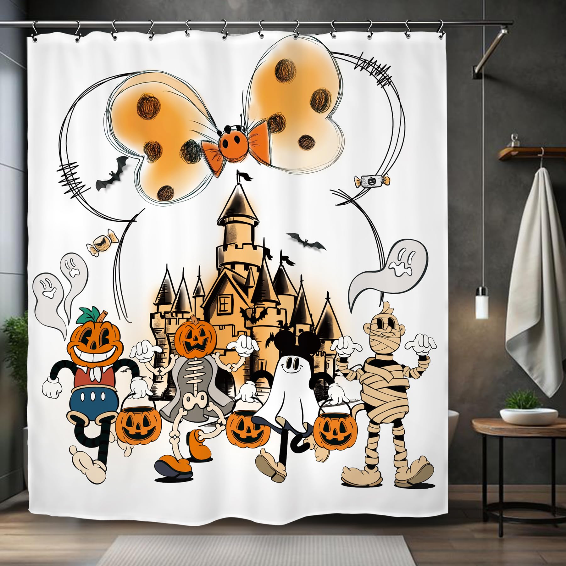 Kalmico Halloween Ghost Pumpkin Mummy Shower Curtain 60Wx72L Inch Trick or Treat Scary Spooky Pumpkin Horror Mouse Head Bathroom Set Accessories Decor with 12 Pack Hooks