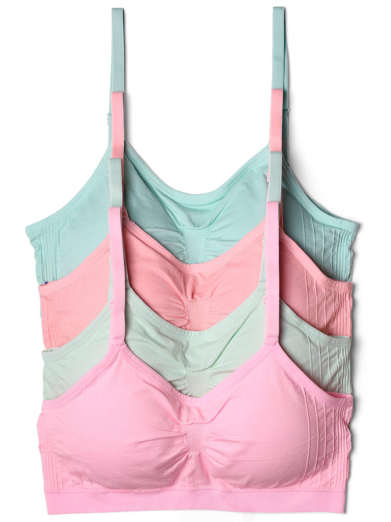 • 4-Pack Womens Cami Bralettes - Pullover Design - No Side Seams - No underwire. Ultimate comfort all day everyday bralettes for women with light support. Lined cups with removable pads in between the lining and the outer fabric.