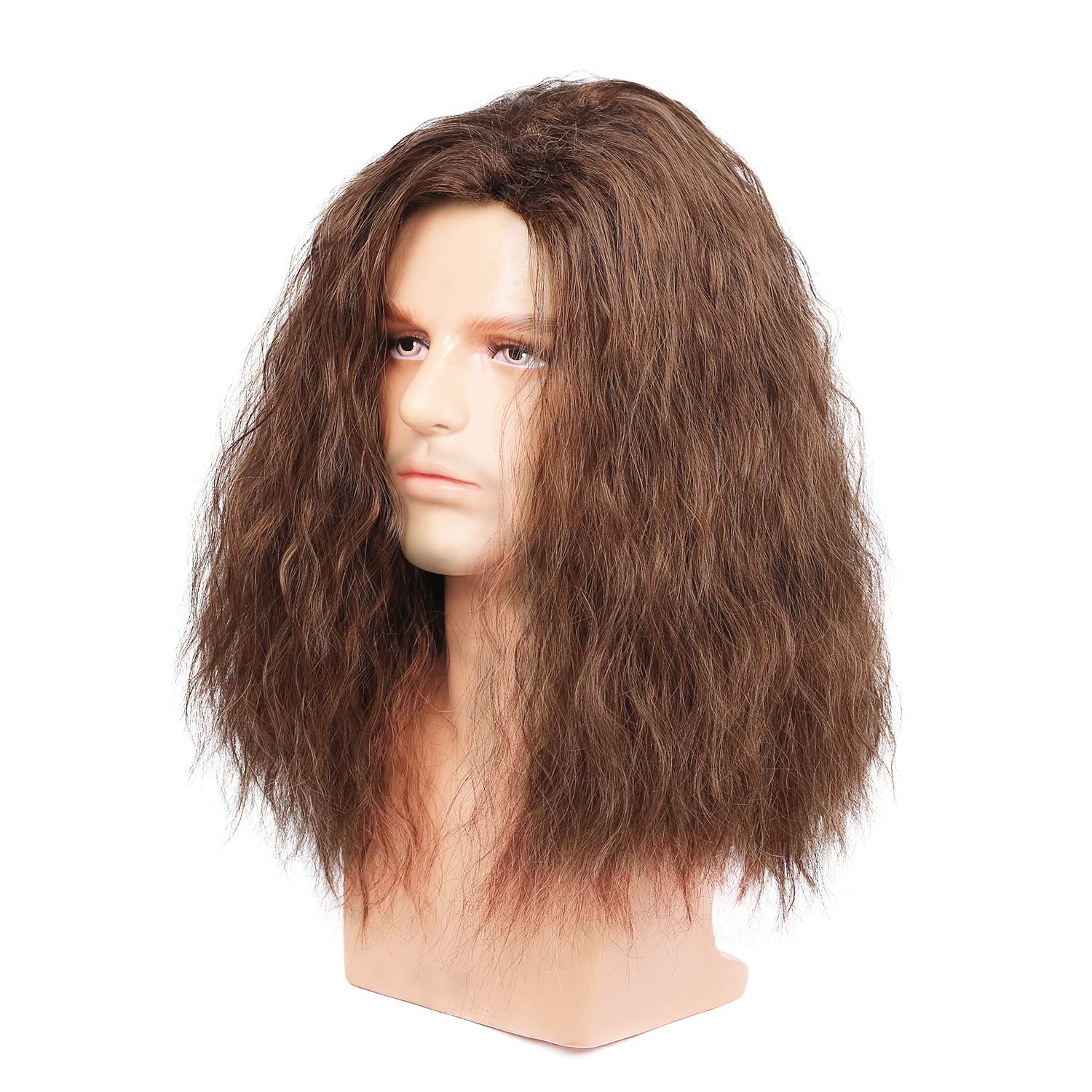 Kaneles Mens Long Brown Wig Mid Length Synthetic Hair for Male Halloween Cosplay 80s Costume Wig