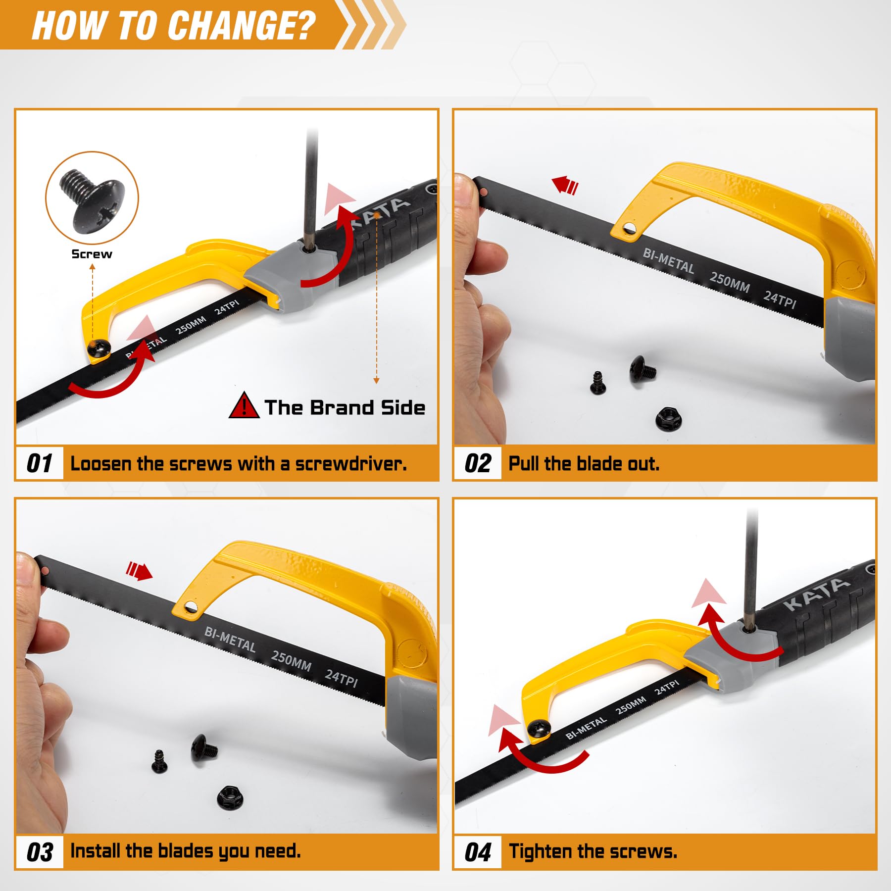 • Excellent Design: Lightweight but very solid aluminum alloy frame hacksaw for easy use, ergonomic double injection anti-slip grip for comfortable operation and very durable. Loosen and fix screw to change and replace blades