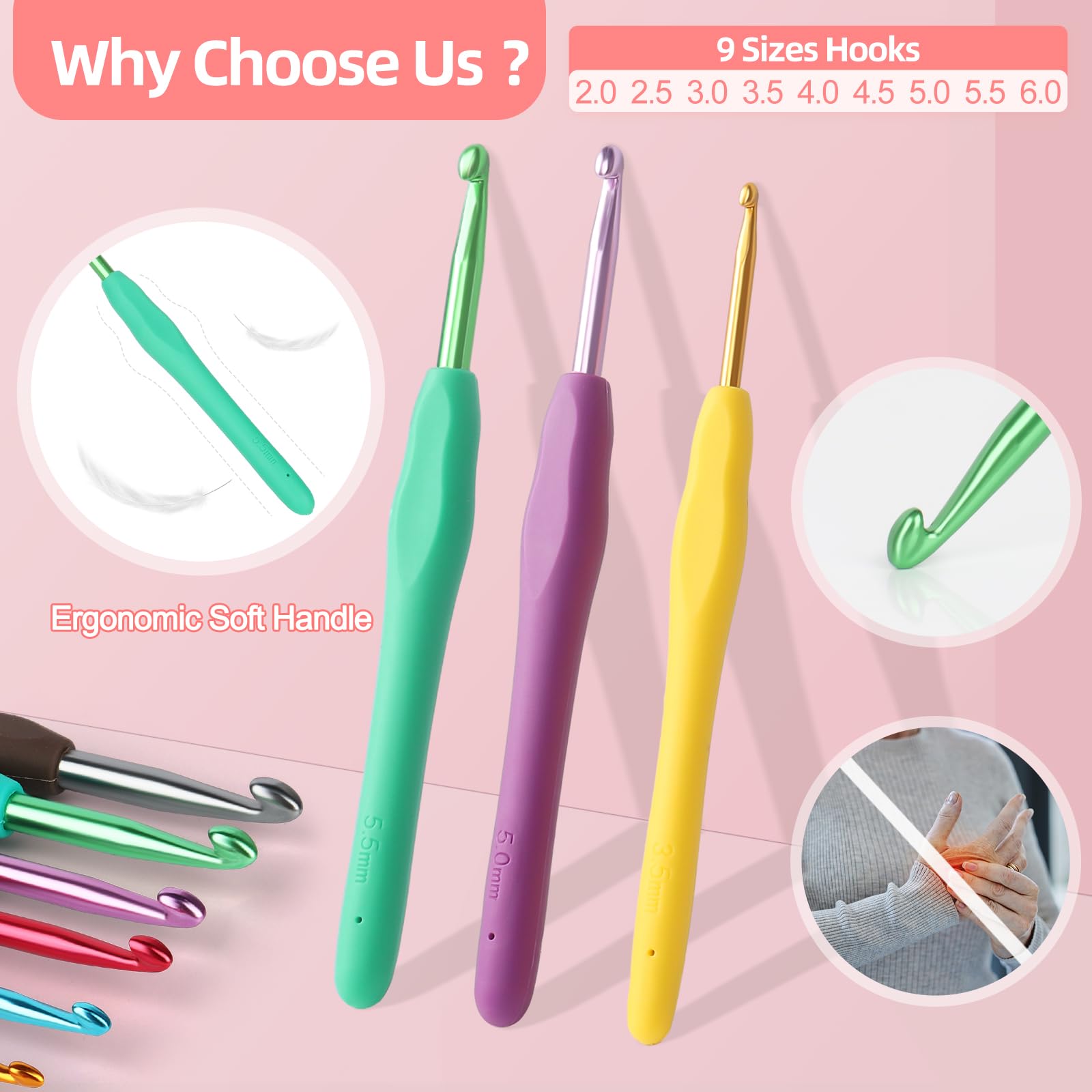 • 💝Complete Beginner Crochet Kit: This beginner crochet kit for adults or kids has everything you need to learn to crochet. Incl 3-in-1 detailed beginner crochet book, 5 rolls of crochet yarn, full-size crochet hooks, 1 pack of 50g stuffing,100 crochet animal safty eyes and portable crochet bag. Complete crochet kit for beginners. Easy to learn, so you can easily master crochet skills and experience the fun of making.