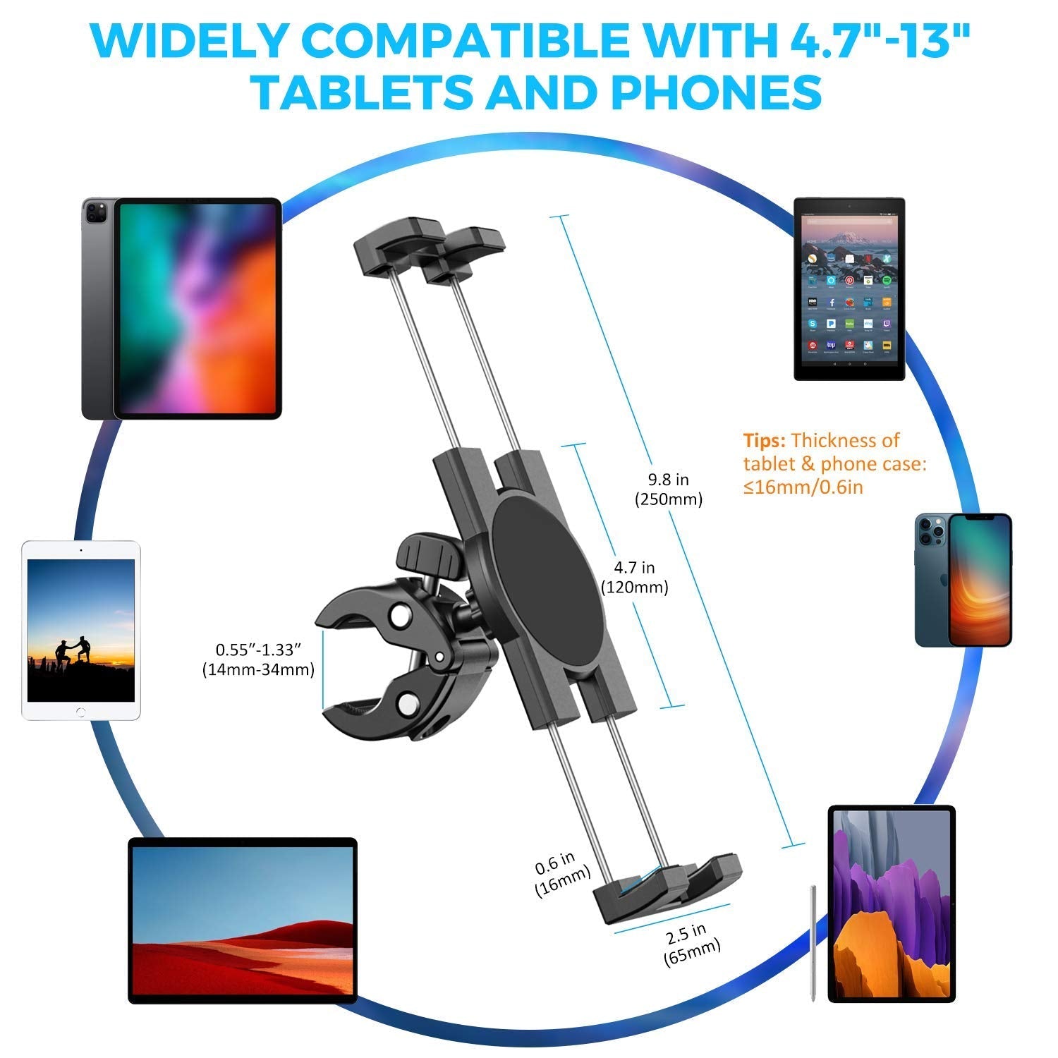 • 【Universal 2 IN 1 Broad Compatibility】KDD indoor bike tablet holder fit for all 4.7'-13' screen cellphones and tablets, such as compatible with iPad Pro 12.9/ 11/ 10.5/ 9.7, iPad 7th 8th Generation 10.2', iPad Air 2 3 4 10.9' 2020, iPad Mini; Galaxy Tab A 10.1/ 10.5/ 9.7/ 8.0, Galaxy Tab S series, Galaxy Tab E 9.6, Tab S4; Surface Pro X/ 7/ 6/ 4/ 3/ Surface Go; Nexus tablets, iPhone, e-Readers etc more tablets and smartphones with or without a case or sleeve.