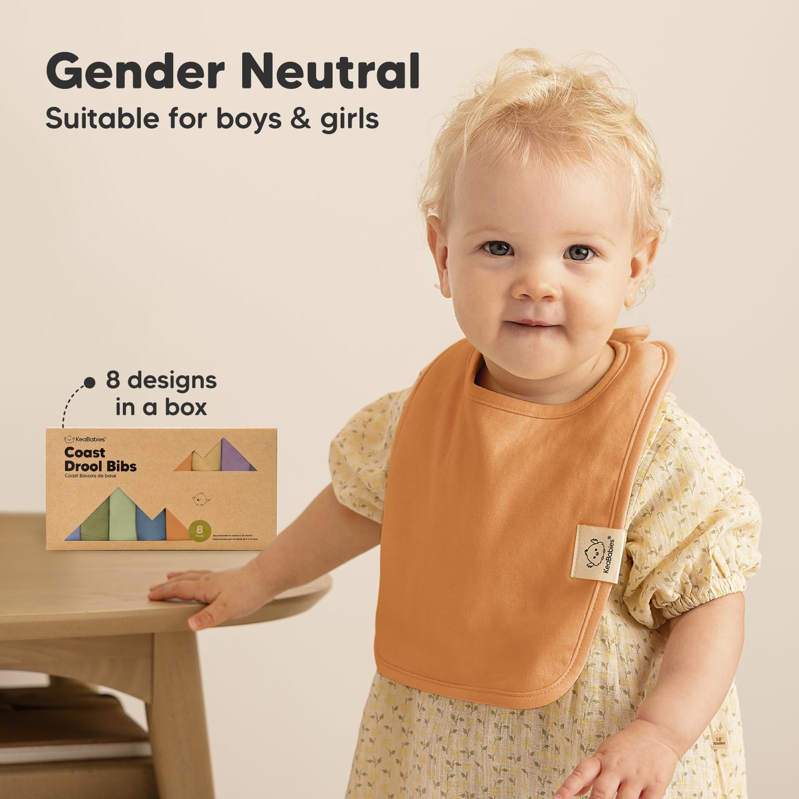 • 8-Pack Organic Cotton Baby Bibs for Boy, Girl - KeaBabies Coast Baby Bibs set comes in 8 unisex colors. Sized 7.9'(L) x 8.2' (W) when worn, it's is a baby essential for newborns, infants, and toddlers, ages 0 to 24 months.