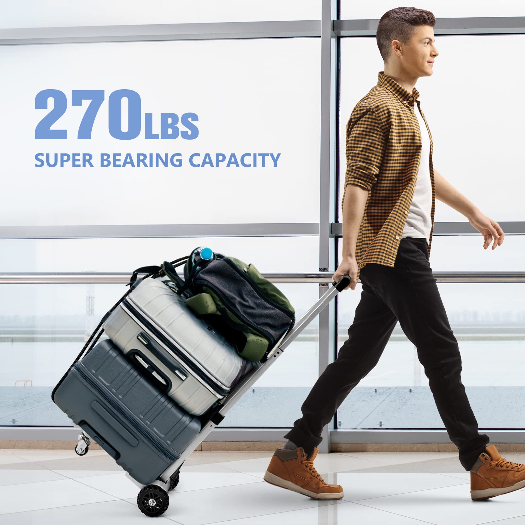 KEDSUM 270LBS Utility Luggage Cart with 4 Wheels, 100% Aluminum Hand Truck Dolly, Folding Hand Truck with Advanced Tank Wheels, Portable Dolly Cart for Luggage, Travel, Shopping, Office Use
