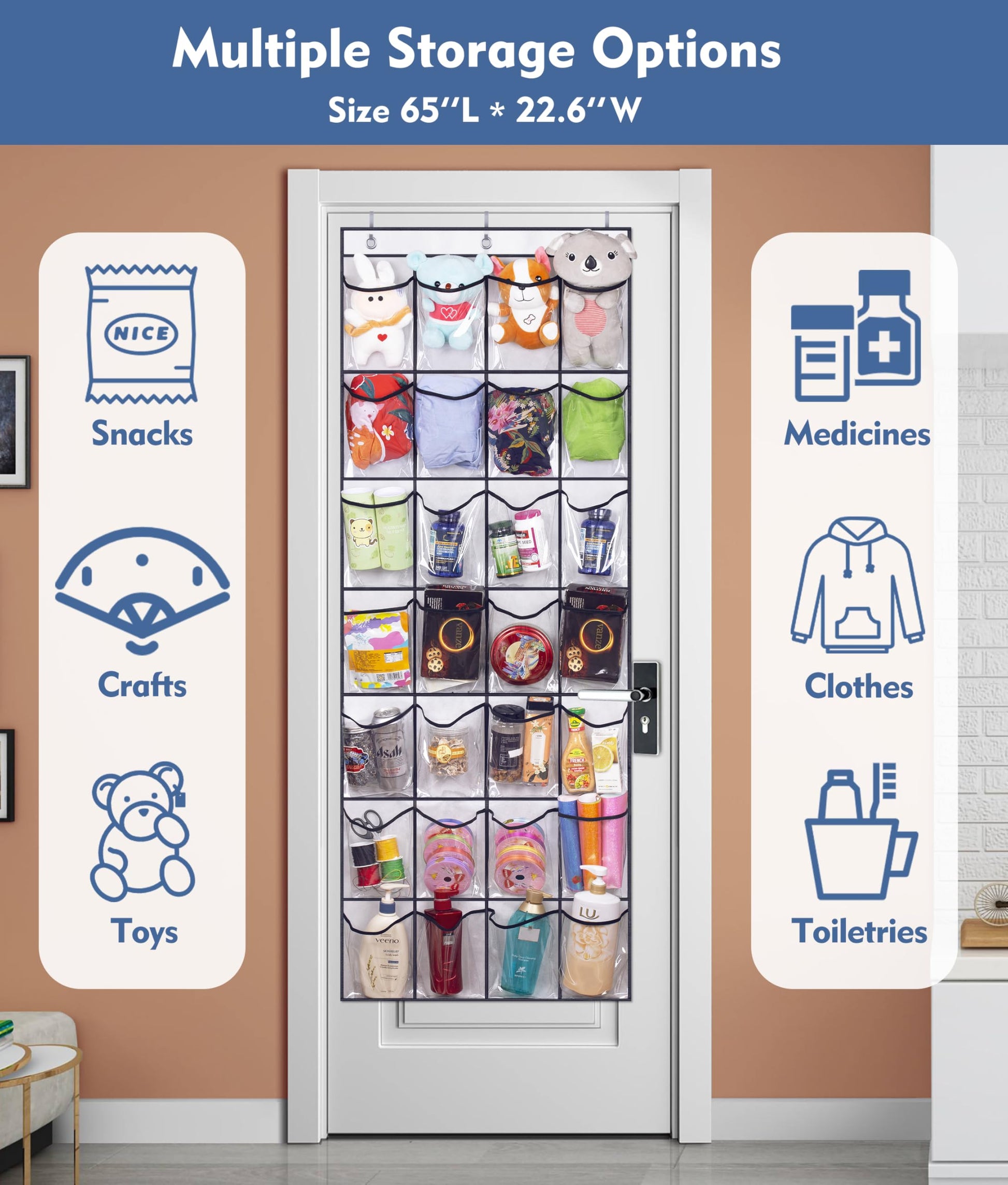 • Easy to Access: Clear pockets made of sturdy material and offer a good view of the items inside, you can put and take out easily from the behind the door shoe organizer; Each pocket of the hanging shoe rack is very easy to clean with a damp cloth when dirty;