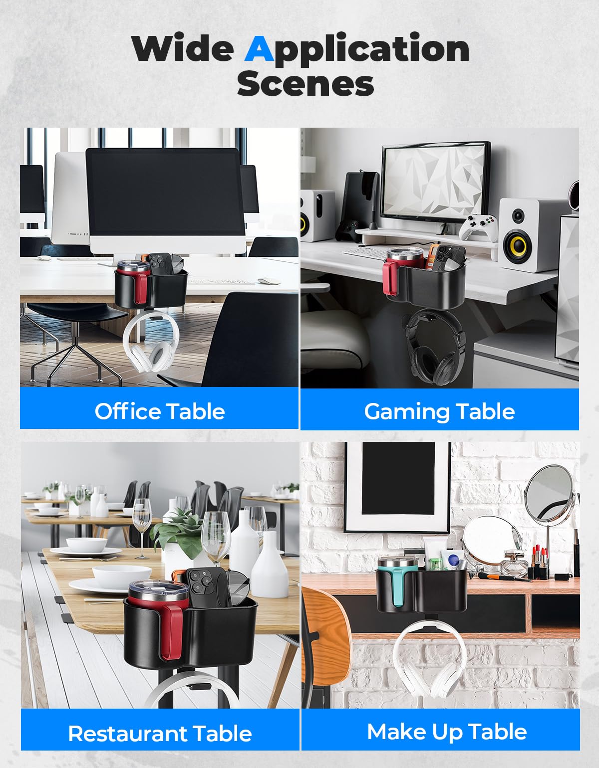 • Fits Most 18-32 oz Cups:Suitable for desks with a thickness of 0.5 to 1.5 inches, there's ample room for 18-32 oz bottles, as well as additional space to store items like pens, phones, pencils, markers, rulers, erasers, and many other desktop accessories