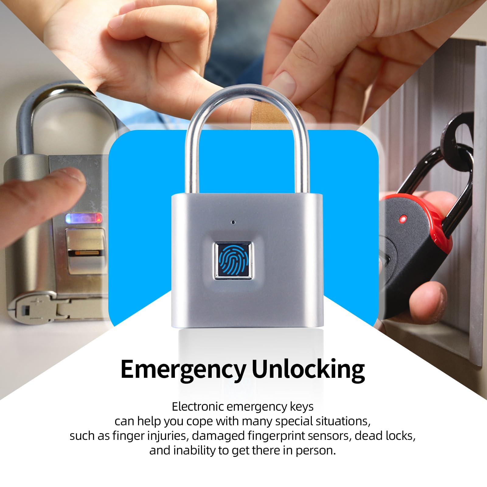 Wide Range of Applications:This fingerprint padlock is compact and can be carried around. You can use this fingerprint padlock in many places. Such as gyms, schools, offices, cabinets, toolboxes, bicycles.If you have any unanswered questions about this lock, you can contact us at the first time.