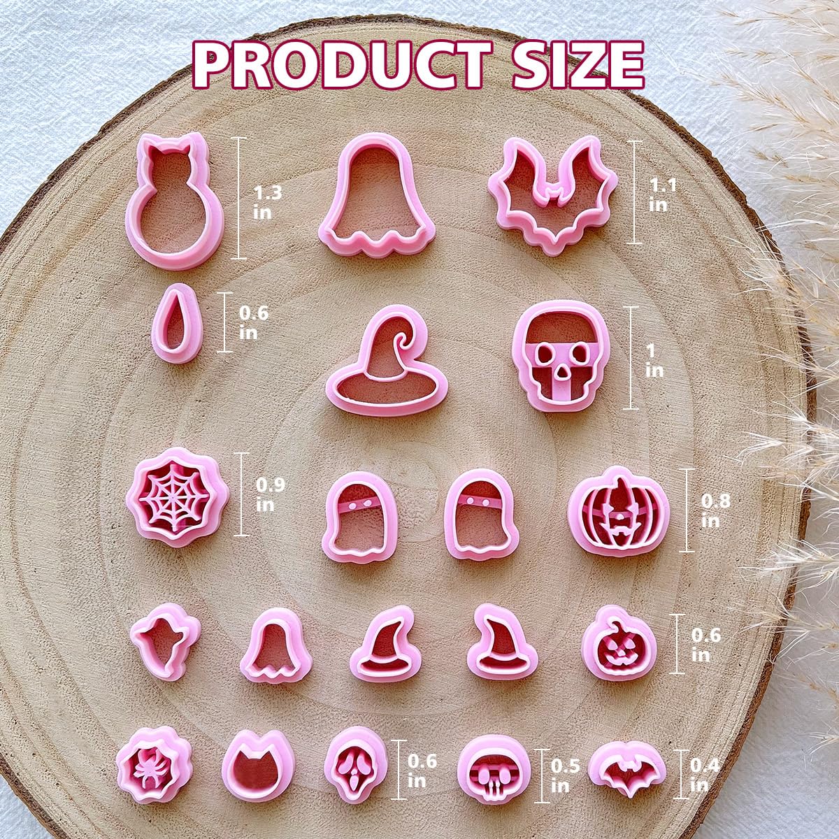 • 【 Halloween Clay Cutters 】20 polymer clay earring cutters: pumpkin clay cutters, witch hat clay cutter, bat clay cutter, ghost clay cutters, skull clay cutter, spider clay cutter, halloween pumpkin lantern clay cutters, bat clay cutter, spiderweb clay cutter, scary cat clay cutter.