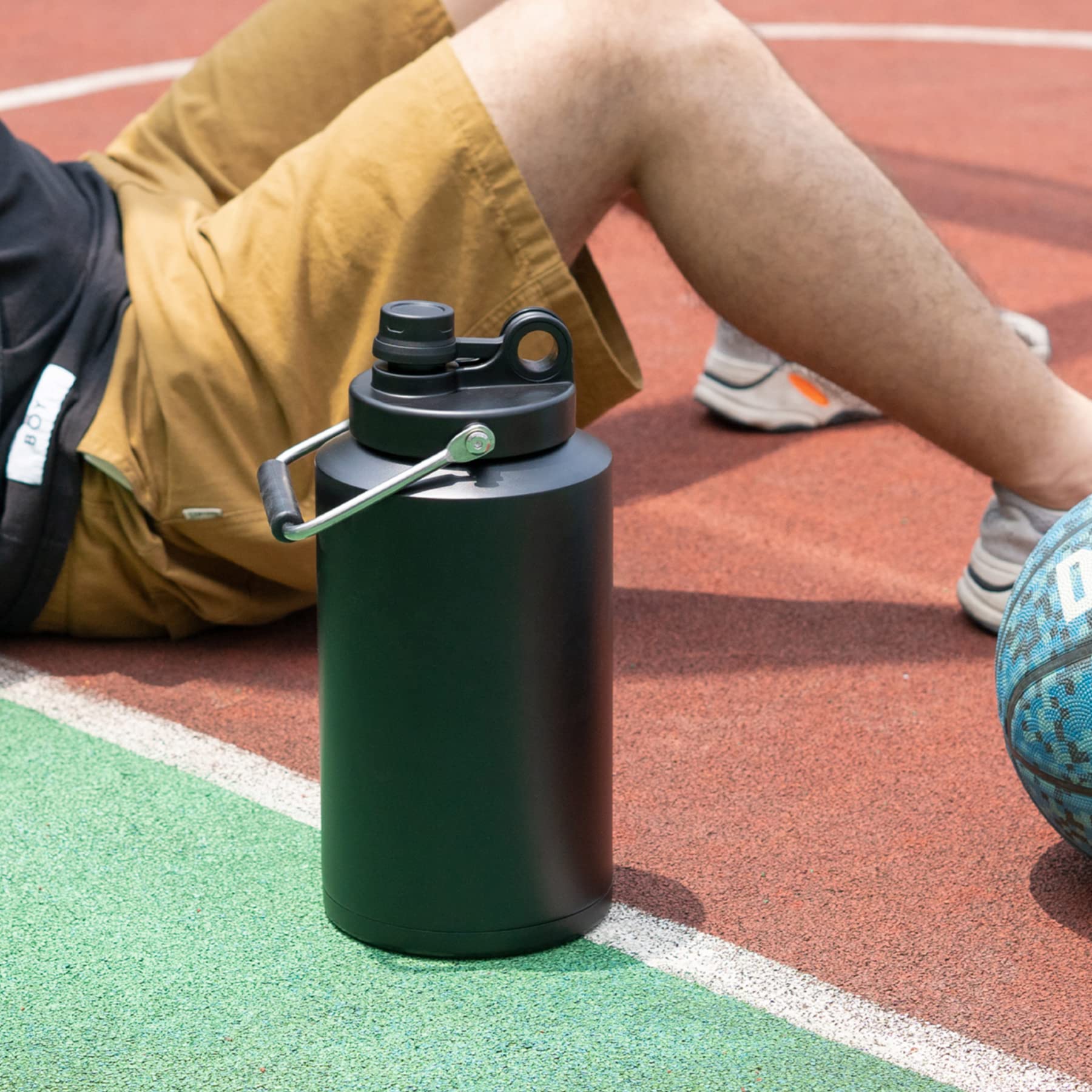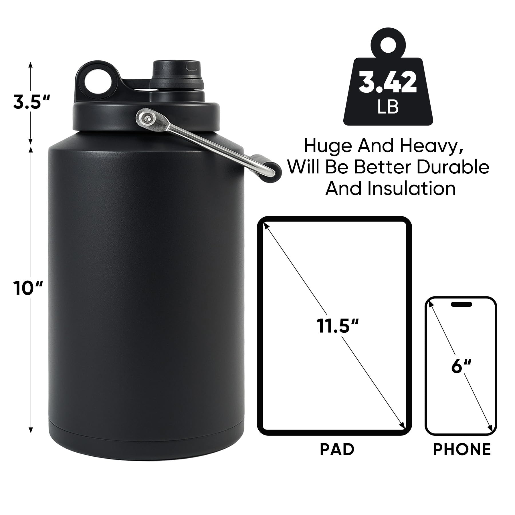 • 💧VACUUM INSULATED: Double layer vacuum insulated kettle, keeps the liquids icy for up to 48 hours or piping hot for up to 24 hours.This gallon water bottle is made of Powder-coat sweat-free technology, bottle grabbing becomes easy in time after strenuous exercise.