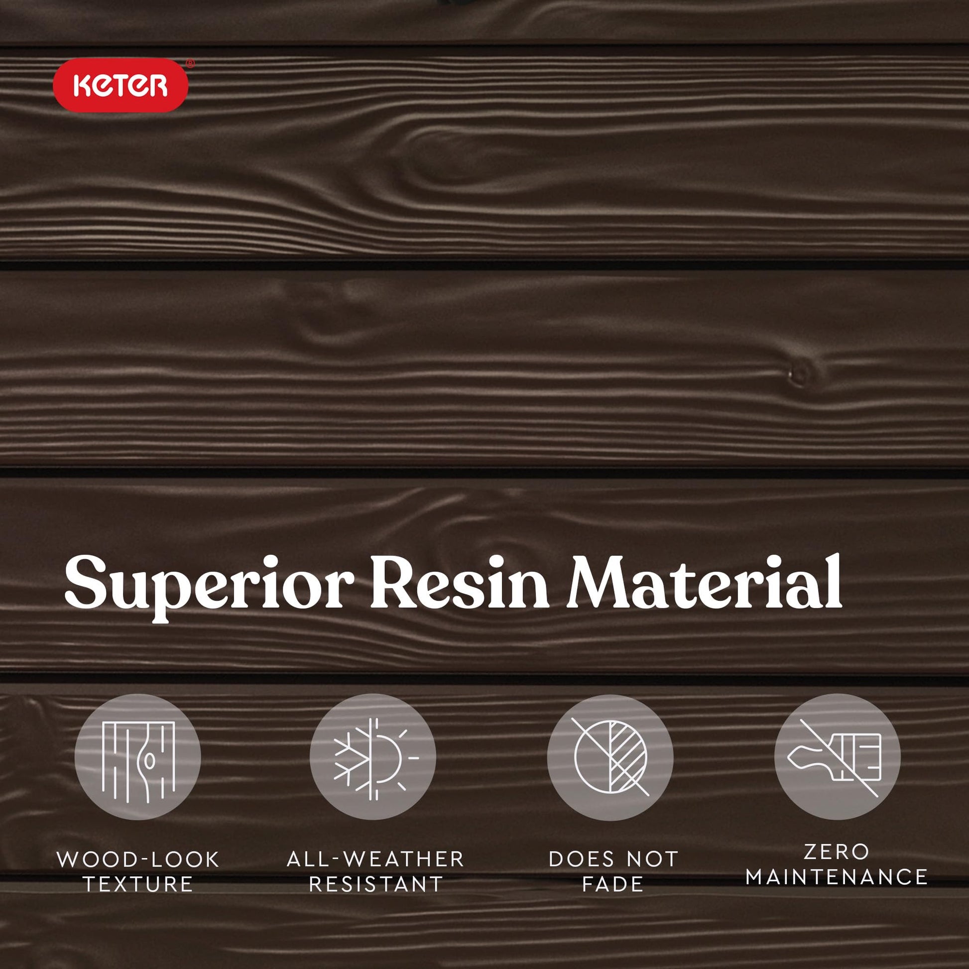 RESIN CONSTRUCTION: It's made out of all weather-resistant resin with an appealing wood-look texture