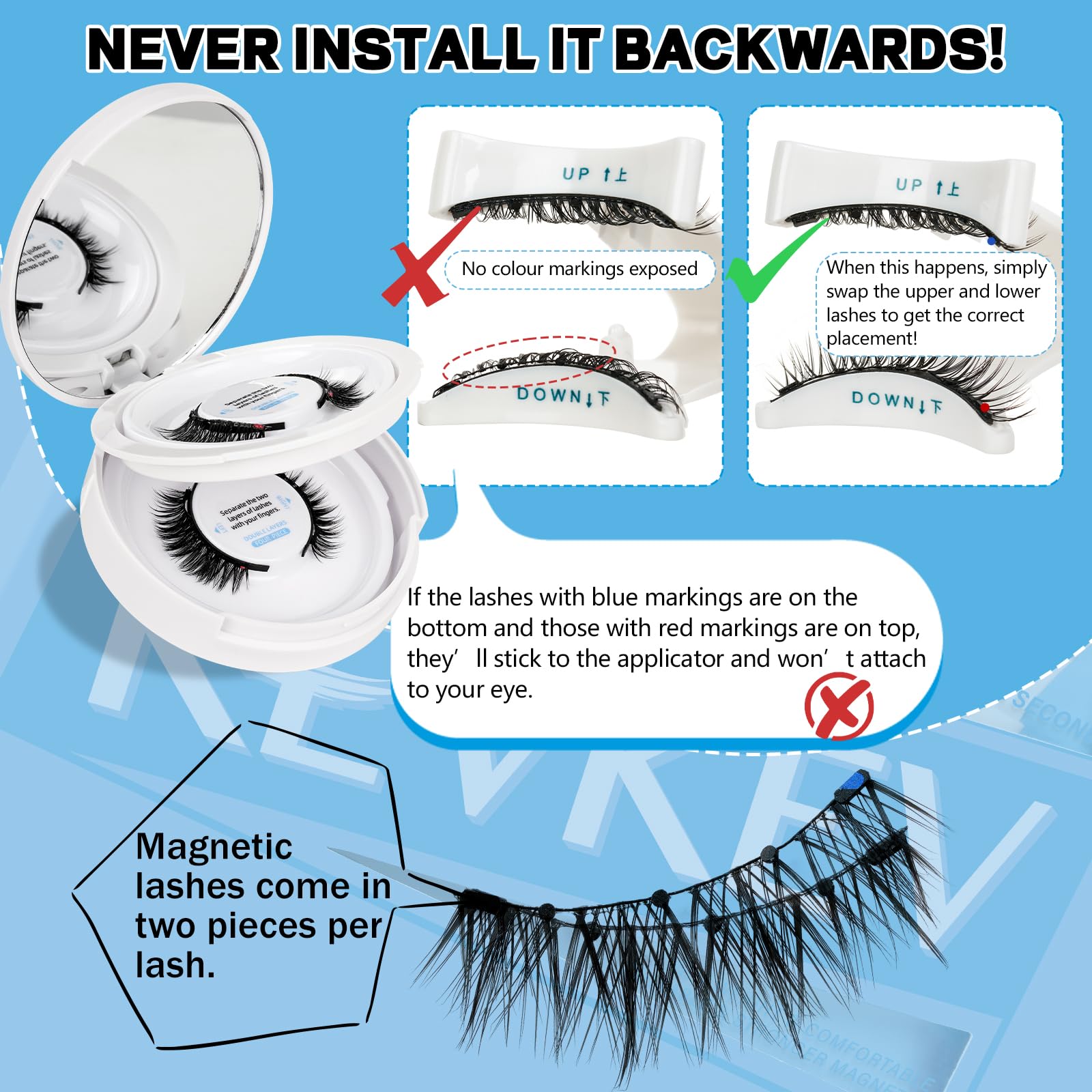 KevKev Magnetic Eyelashes Kit 2Pairs Reusable Magnetic Lashes Kit Smaller Magnets False Eyelashes without Eyeliner No Glue Needed with Applicator Easy to Wear and Remove