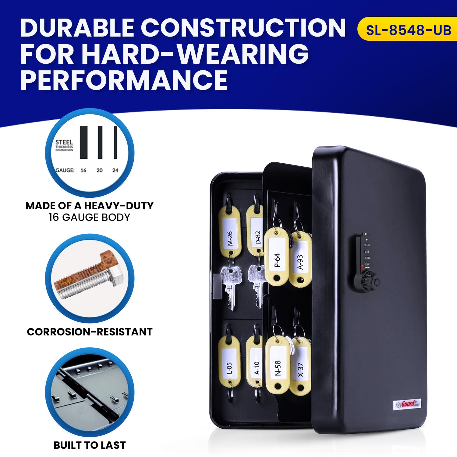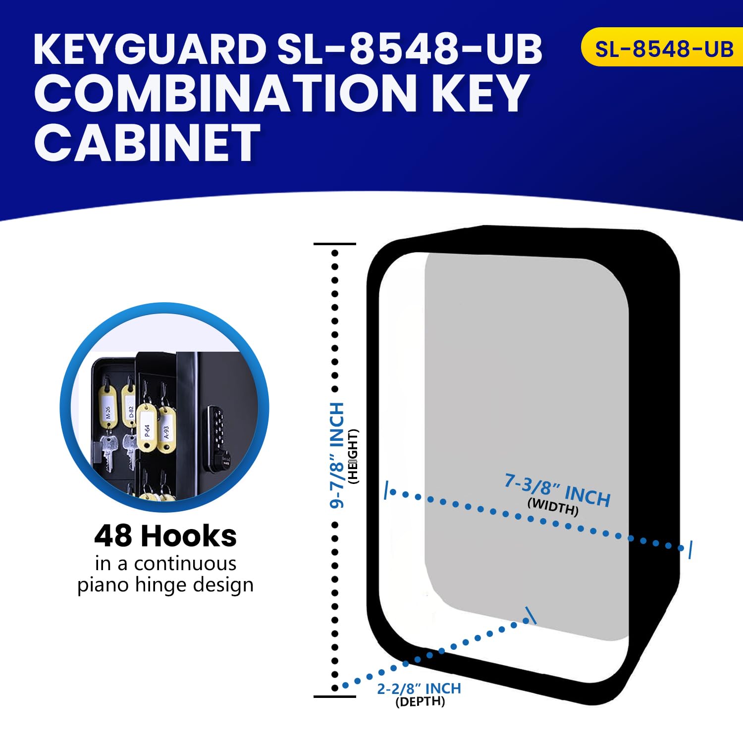 • KEYLESS COMBINATION KEY CABINET ORGANIZER - The KeyGuard SL-8548-UB Key Cabinet is the ultimate solution to safeguarding and organizing keys while offering convenient, keyless access. Not your ordinary home decor or house decor, bedroom decor, or living room decor, this key organizer has a built-in 3-dial Combi-Cam lock that you can set up to as many as 10,000 possible combinations.